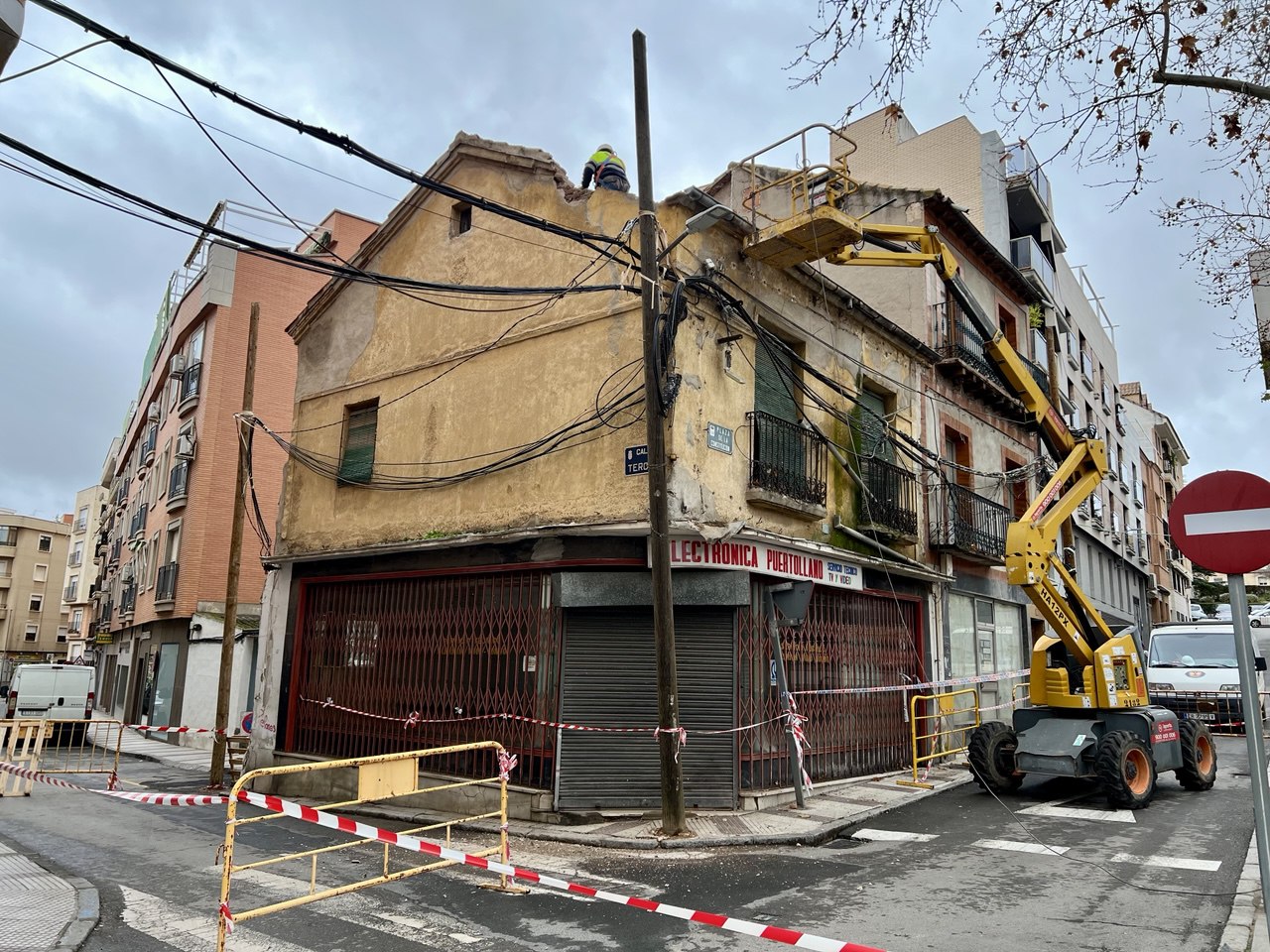 Las tareas de demolición de uno de los viejos edificios de la Plaza Constitución que hacen esquina con la calle Tercia de Puertollano han dado comienzo esta semana, con el balizamiento y primeras actuaciones en el tejado de la vivienda. Aunque no tiene un gran valor arquitectónico y su estado es de ruina, se trata de una de las casas más antiguas que se han conservado en el corazón de la ciudad, y será recordada por muchos, ya que albergó un pequeño pero populoso bar, y una antigua tienda de electrodomésticos. Con ella se va otro resquicio del viejo Puertollano y de la antaño pujante calle Tercia.