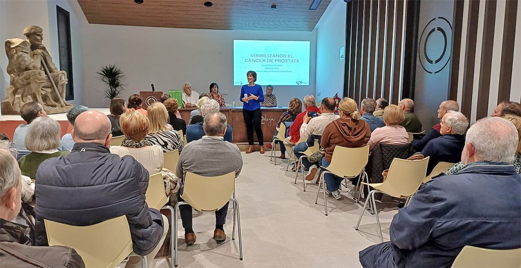 Por su parte, la Dra. Pilar Rodríguez García, Médico de Familia, Especialista en Medicina Preventiva y Salud Pública; explicó lo que es la próstata, “una glándula del sistema reproductivo masculina que produce el líquido que transporta y alimenta los espermatozoides durante la eyaculación”.También detalló las diferentes enfermedades más comunes que pueden afectar a la próstata: La hipertrofia benigna de próstata, “un agrandamiento progresivo de la próstata que ocasiona problemas urinarios y vesicales”, la prostatitis o el “cáncer de próstata”, que consiste en “la formación de células malignas en los tejidos de la próstata”. Rodríguez García explicó los diferentes síntomas de esta enfermedad, “problemas al orinar como dificultad para comenzar, un chorro débil o micción frecuente, especialmente por la noche. También pueden presentarse dolor al orinar, sangre en la orina o el semen, y dolor persistente en la espalda, caderas o pelvis”, la Doctora destacó “que en sus etapas iniciales puede ser asintomático”.
