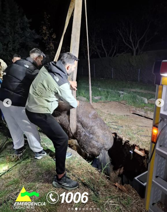 Bomberos del Parque de Ciudad Real han rescatado esta tarde-noche a un caballo que se había precipitado en el interior de una antigua fosa séptica en la pedanía de Las Casas.