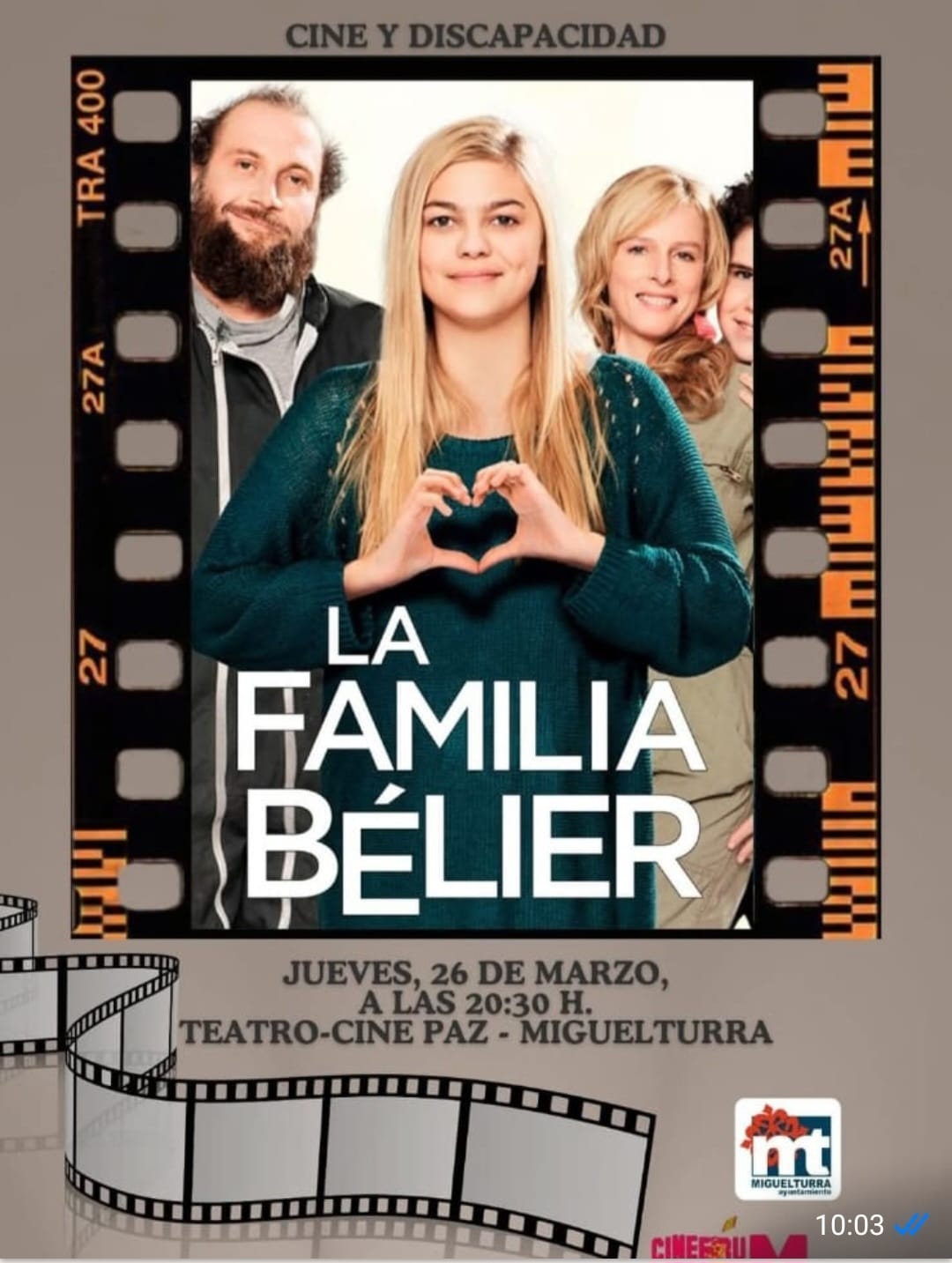 Anselmo Alañón Alcaide. Hoy jueves en el Cineforum de Miguelturra, podemos ver otra peli, en esta ocasión vuelve el ciclo cinematográfico por la Discapacidad. El título que nos propone es «La familia Bélier», una comedia familiar de producción francesa que relata la vida de una familia de clase media en la que todos sus miembros, excepto Paula, la hija de 16 años, padecen sordera. La proyección de esta interesante película francesa tendrá lugar en el Teatro Cine Paz de Miguelturra a las 20.30 horas.