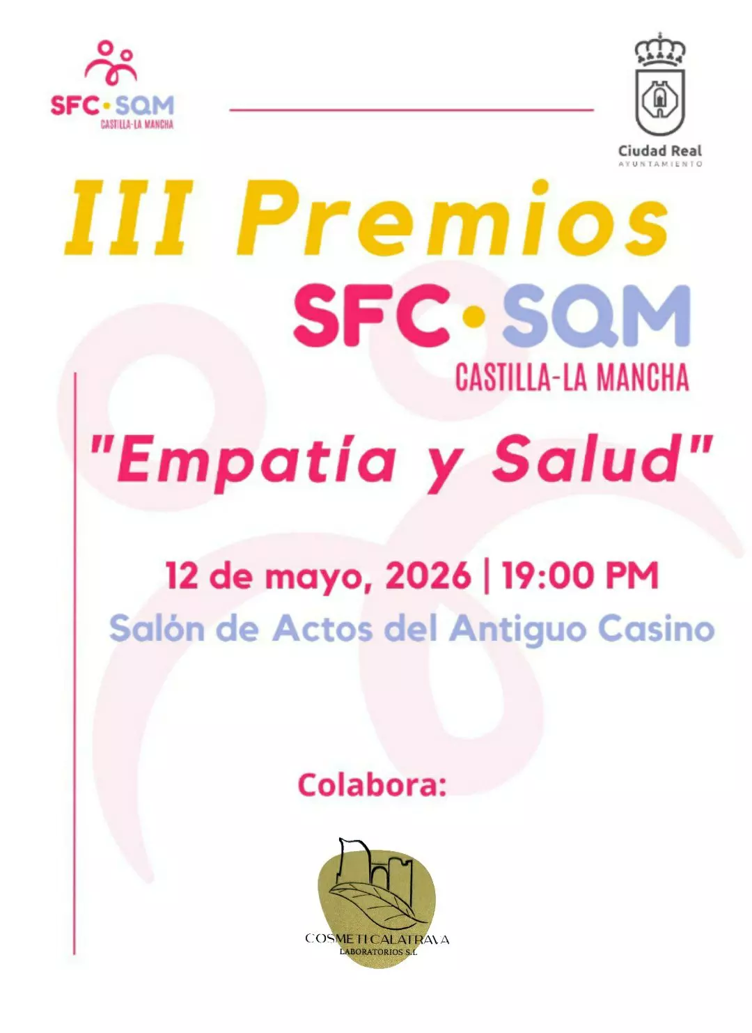 La asociación SFC-SQM Castilla-La Mancha celebrará el próximo 12 de mayo de 2026, a las 19:00 horas, en el Salón de Actos del Antiguo Casino de Ciudad Real, la III Edición de los Premios “Empatía y Salud”, una cita que busca poner en valor la empatía y la salud, el compromiso y la humanidad de quienes han contribuido de manera significativa a mejorar la vida de las personas afectadas por; Encefalomielitis Miálgica / Síndrome de Fatiga Crónica (EM/SFC), Sensibilidad Química Múltiple (SQM).