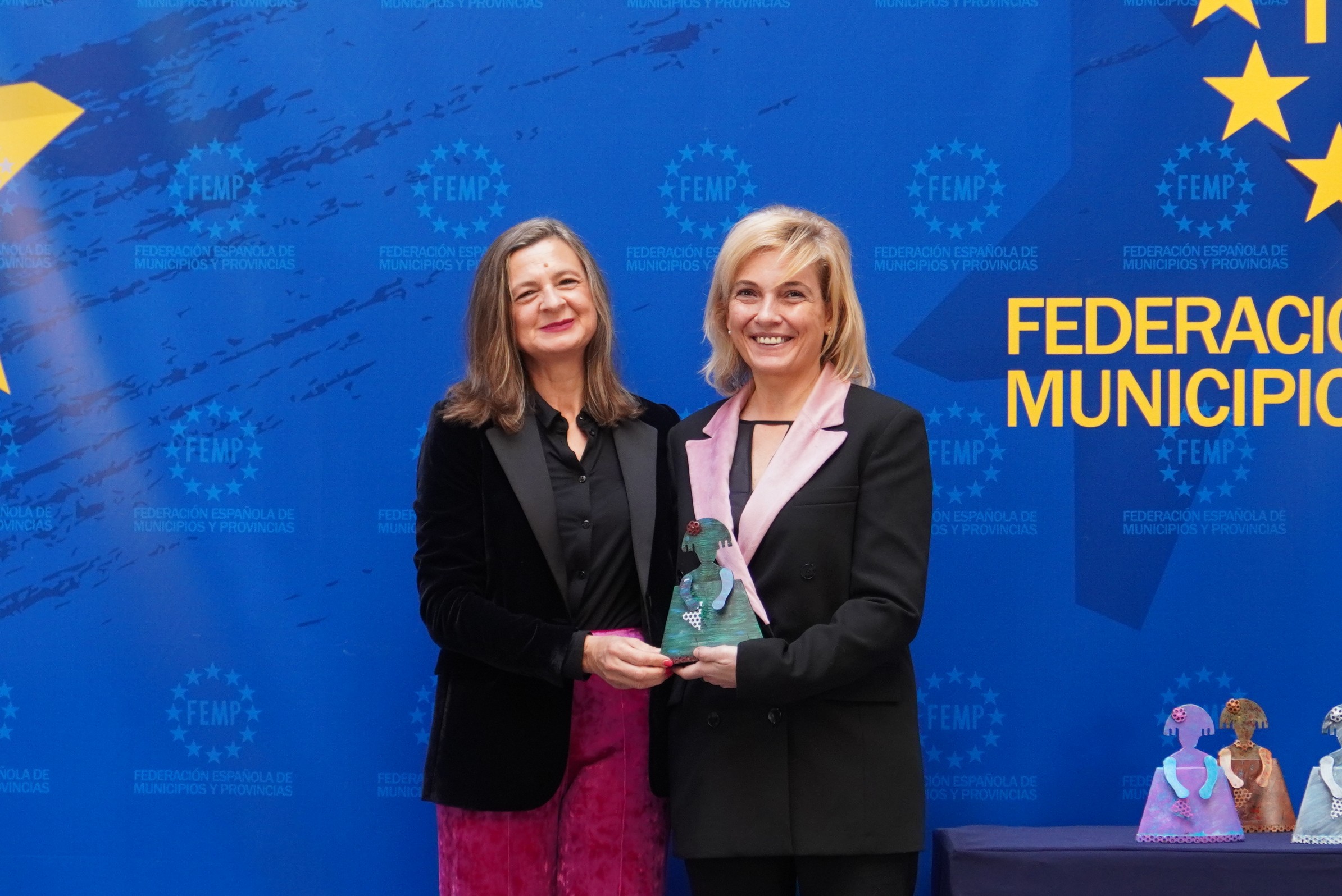 En el acto también han estado presentes los alcaldes y presidentes de las ciudades y municipios galardonados, quienes han recogido sus distinciones con forma de menina, elaboradas por personas en régimen de privación de libertad, lo que las hace piezas únicas. El objetivo de estas menciones es significar la trayectoria de municipios especialmente comprometidos contra la violencia de género.