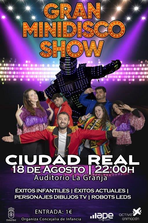 Las actividades dirigidas a niños y niñas continúan este lunes por la noche, a las 20:00 horas, con el espectáculo musical infantil “Gran Minidisco Show”, que se va a celebrar en el Auditorio Municipal “La Granja”. Las entradas se pueden adquirir en taquilla de 19 a 21 horas al precio de 1€.