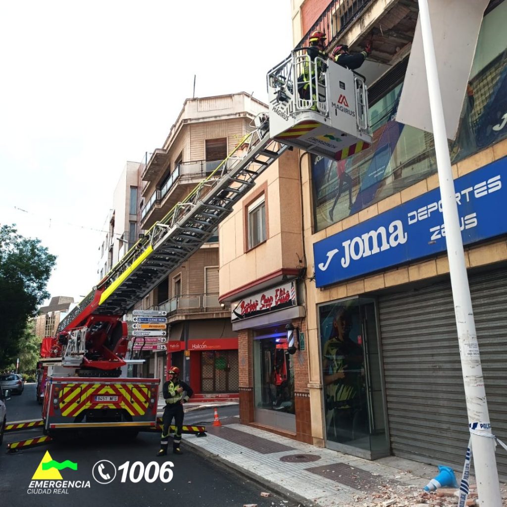 Según ha informado el SCIS, en Puertollano se procedió al saneamiento y balizamiento del voladizo del balcón de un edificio que acabó desprendido sobre la vía pública en la calle Ricardo Cabañero, sin que se registrarán heridos. Los bomberos se desplazaron también para sofocar un incendio de pastos localizado en la variante del minero.