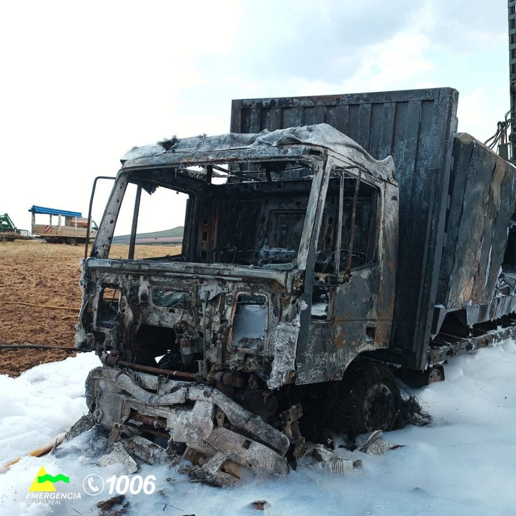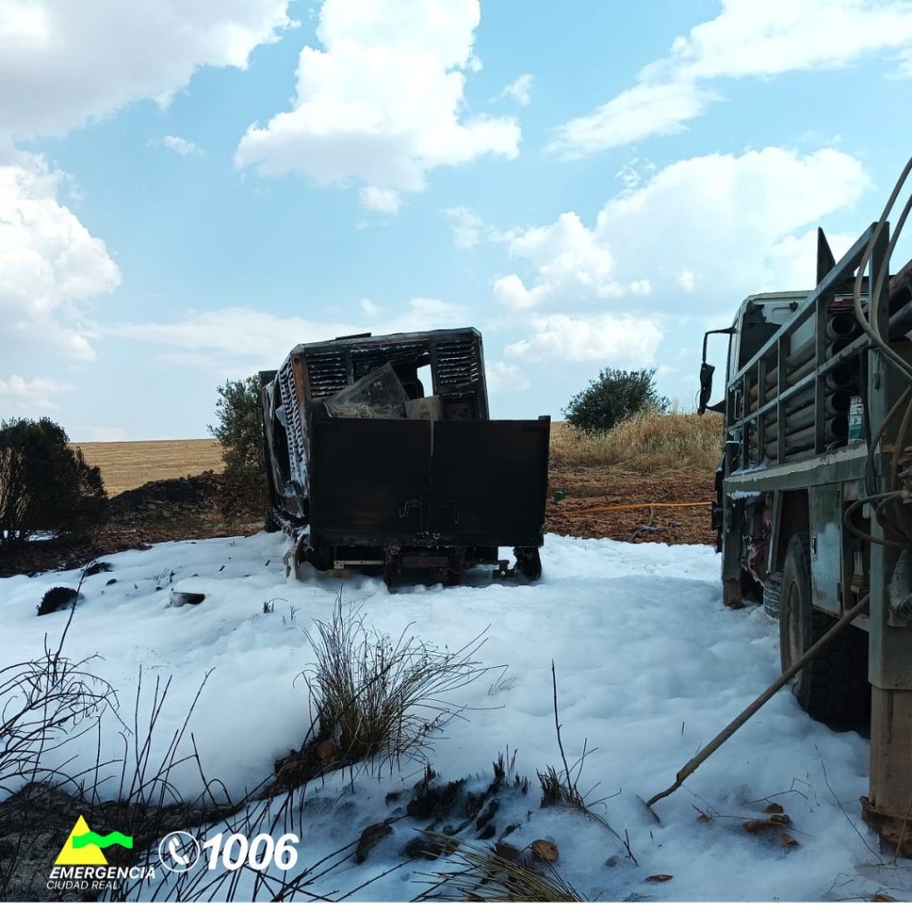 En Valdepeñas, intervinieron en la extinción del incendio de un camión con motor de gasoil y depósito, que a su vez provocó un incendio de rastrojos.