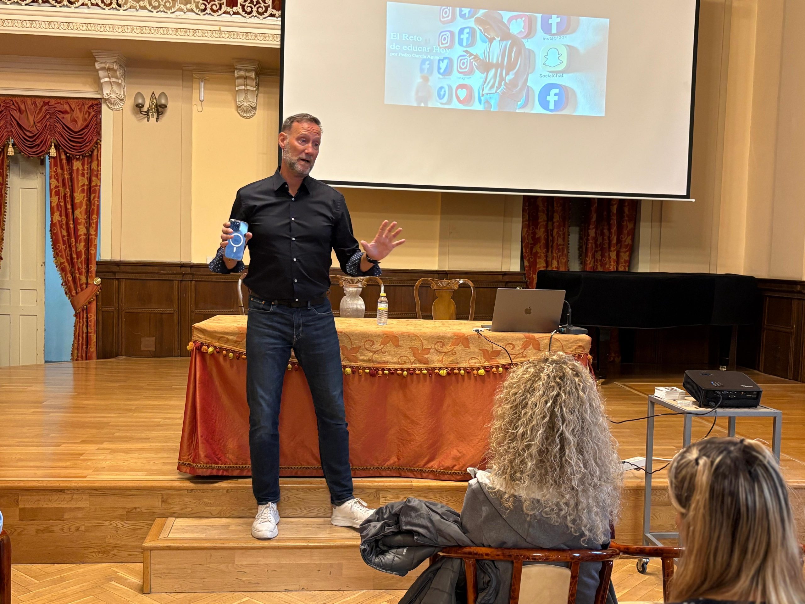 Durante su intervención, García Aguado planteó que educar hoy se ha convertido en un verdadero reto, en parte por la irrupción de las tecnologías y los cambios de paradigma social. Advirtió que muchos padres y madres intentan aplicar modelos heredados de generaciones anteriores que ya no responden al mundo actual. “No podemos educar a los niños como nos educaron a nosotros, porque el mundo para el que nos prepararon ya no existe”, sostuvo el ponente.