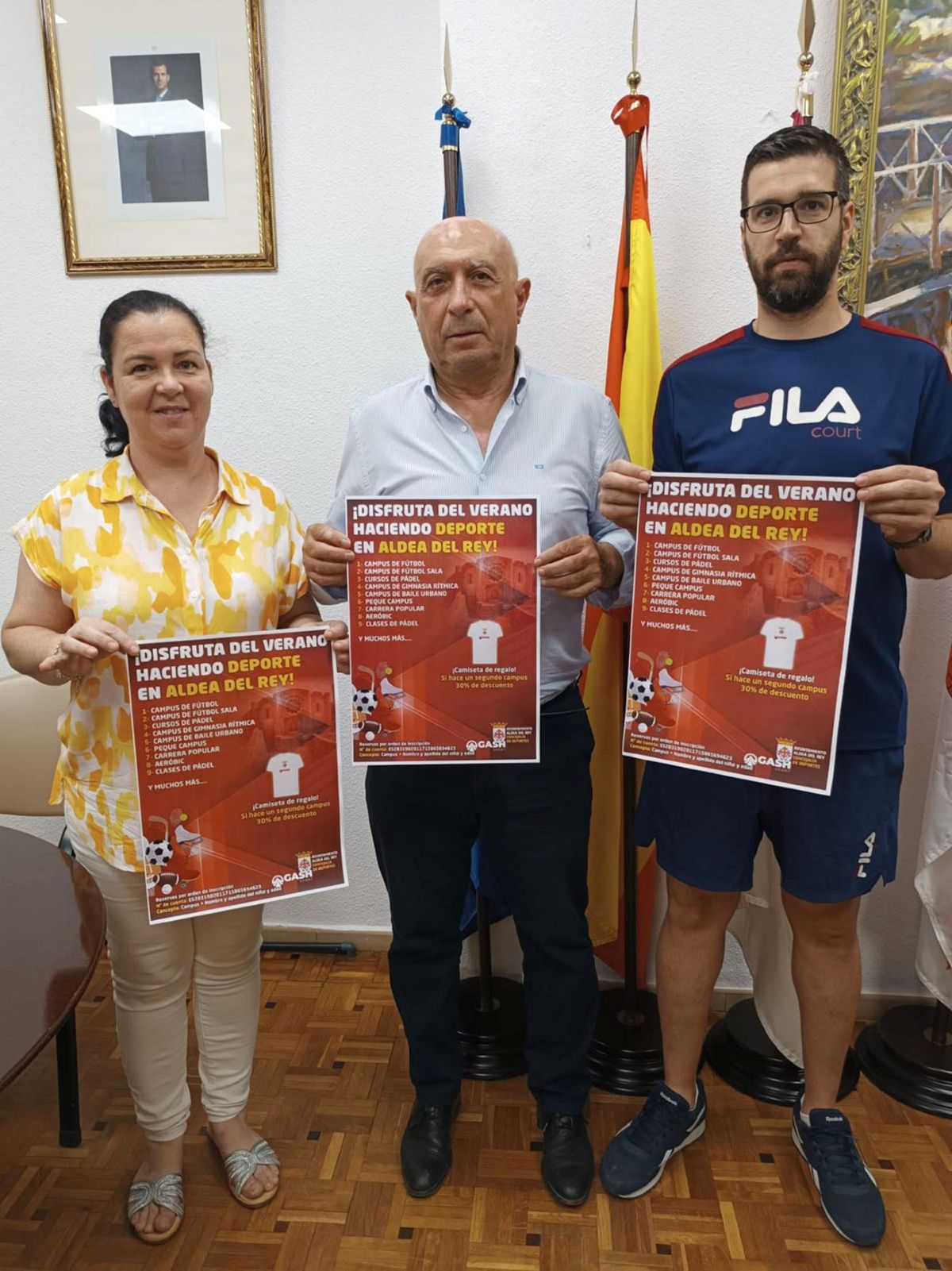 El alcalde de Aldea del Rey, Cándido Barba Ruedas, junto a la primer Teniente de Alcalde, Araceli Valbuena y la empresa Gash Sport, han presentado los esperados Campus Deportivos de verano de 2025, una iniciativa que combina deporte, diversión y convivencia, y que este año sigue con su amplia oferta con actividades para todos los gustos: fútbol, fútbol sala, peque campus (para los más pequeños), Gimnasia rítmica y baile urbano.