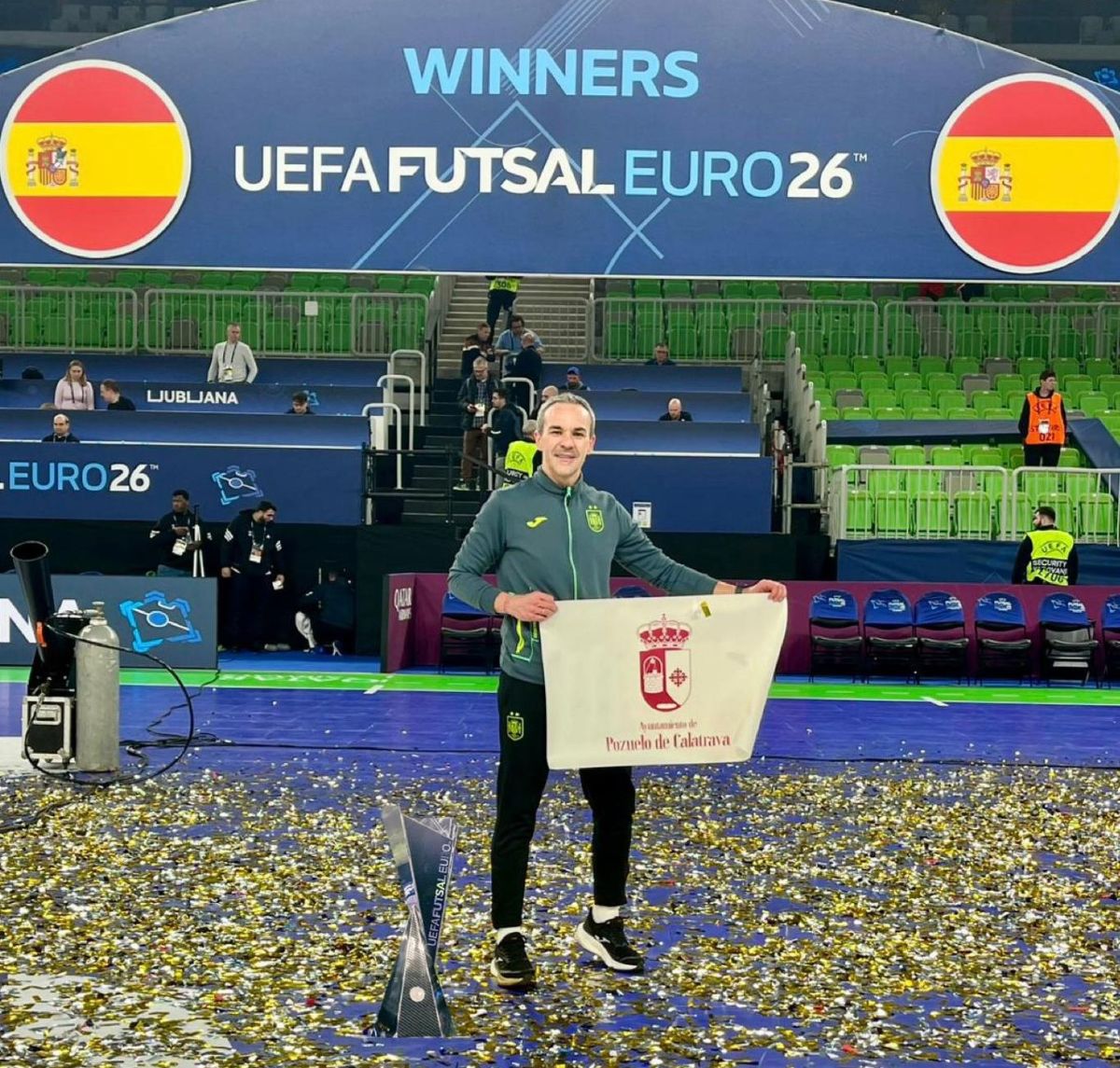 El Ayuntamiento de Pozuelo de Calatrava ha trasladado su felicitación a Leo Herrera tras la conquista del Campeonato de Europa de Fútbol Sala con la selección española, un éxito deportivo de primer nivel que devuelve a España a lo más alto del panorama continental. El combinado nacional se proclamó campeón de Europa tras imponerse a Portugal por 3-5 en la gran final disputada en el Arena Stožice de Liubliana, logrando así la octava Eurocopa de su historia y poniendo fin a una década sin títulos europeos. Leo Herrera será recibido entre honores esta tarde (19 horas) de forma oficial en el Ayuntamiento de Pozuelo de Calatrava en un acto público y abierto a todas las personas que quieran participar y recibir al flamante campeón europeo.