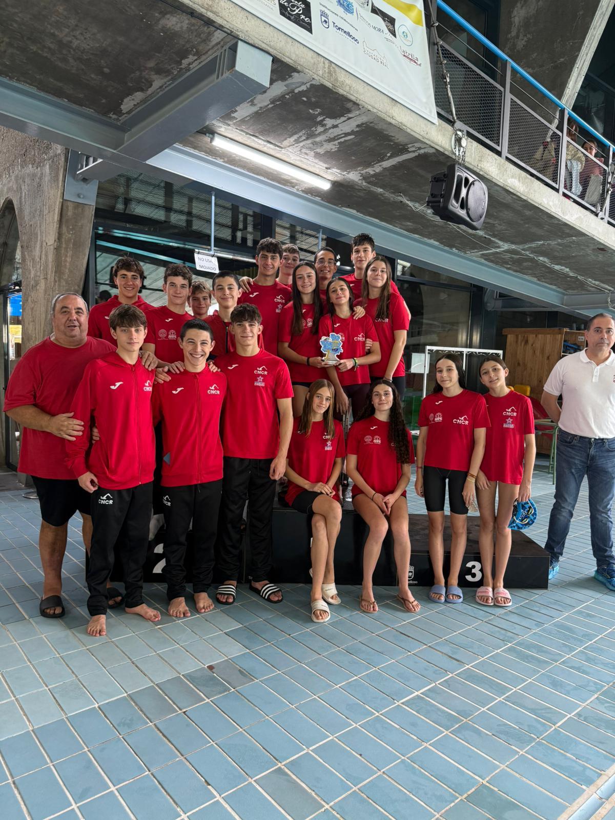 Así, en la competición de fondo, el CNCR se alzó con el trofeo de campeón regional gracias a la destacada actuación de sus 16 nadadores. En la prueba de 2.000 metros infantil, los hermanos Lucas y Javier Monteagudo subieron al podio, consiguiendo las medallas de plata y bronce, respectivamente. En la misma prueba, Marta Mendiola e Isabel Pernías obtuvieron las medallas de plata y bronce en la