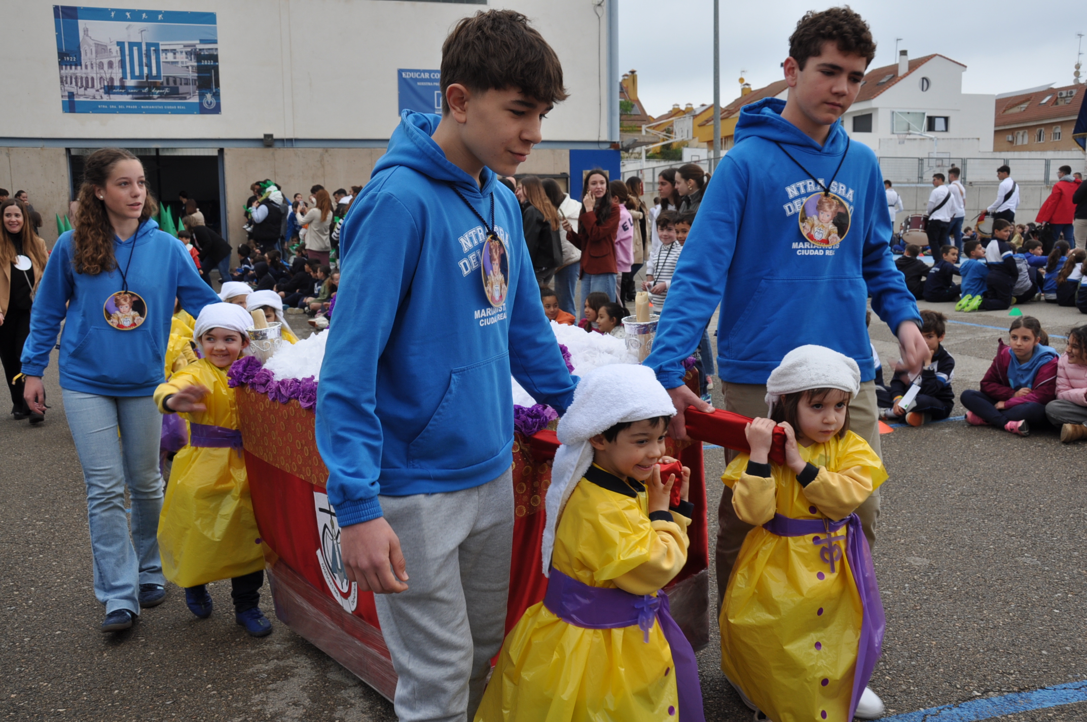 Como si de un milagro se tratara, la lluvia dio un respiro en la mañana del viernes de Dolores para que casi cuatrocientos alumnos del colegio Nuestra Señora del Prado desfilaran este viernes por las calles del barrio de los Ángeles.