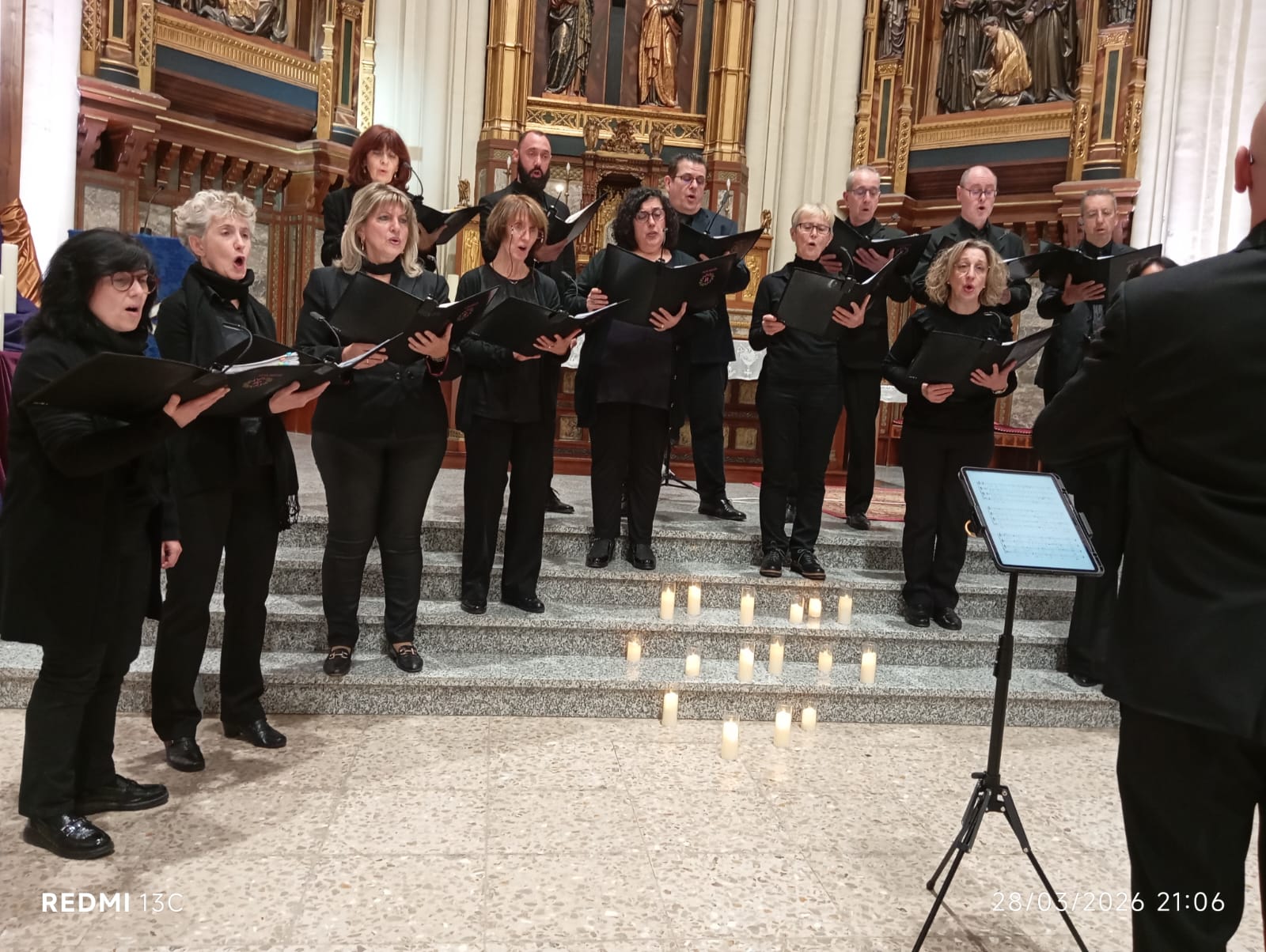 Las sopranos Teresa Sobrino, María del Prado Mora, Inmaculada Mora, Maribel Camacho y Carmen Rivas; Las voces «altas» de María Jesús Valiña, Mayte Prado, Mar Camacho, Nieves Nieto y Paloma Prieto; los y las tenores María José Fernández, Ramón Daniel Díaz, Jaime Molla y Jesús Alfonso Martín, y los bajos Gonzalo Plaza y Ramón Casas, alcanzaron el éxito más rotundo con el siguiente repertorio: Hosanna Filio David «Antiphona»; Pueri hebeaeorum; O Sacrum Convivium; Kyrie y Sanctus, ambos cantos del Oficio de Difuntos; Ave Verum Corpus; O Jesu Christe; Tenebrae Factae sunt; Caligaverunt ocu mei; O vos omnes; Veri Languores nosotros; O mors, ero mors tua «Antiphona»; Miserere mei «Salmo»; In pace; Christus factus est, terminando con un Avemaría que, como decimos en nuestra tierra, nos puso el vello de punta.