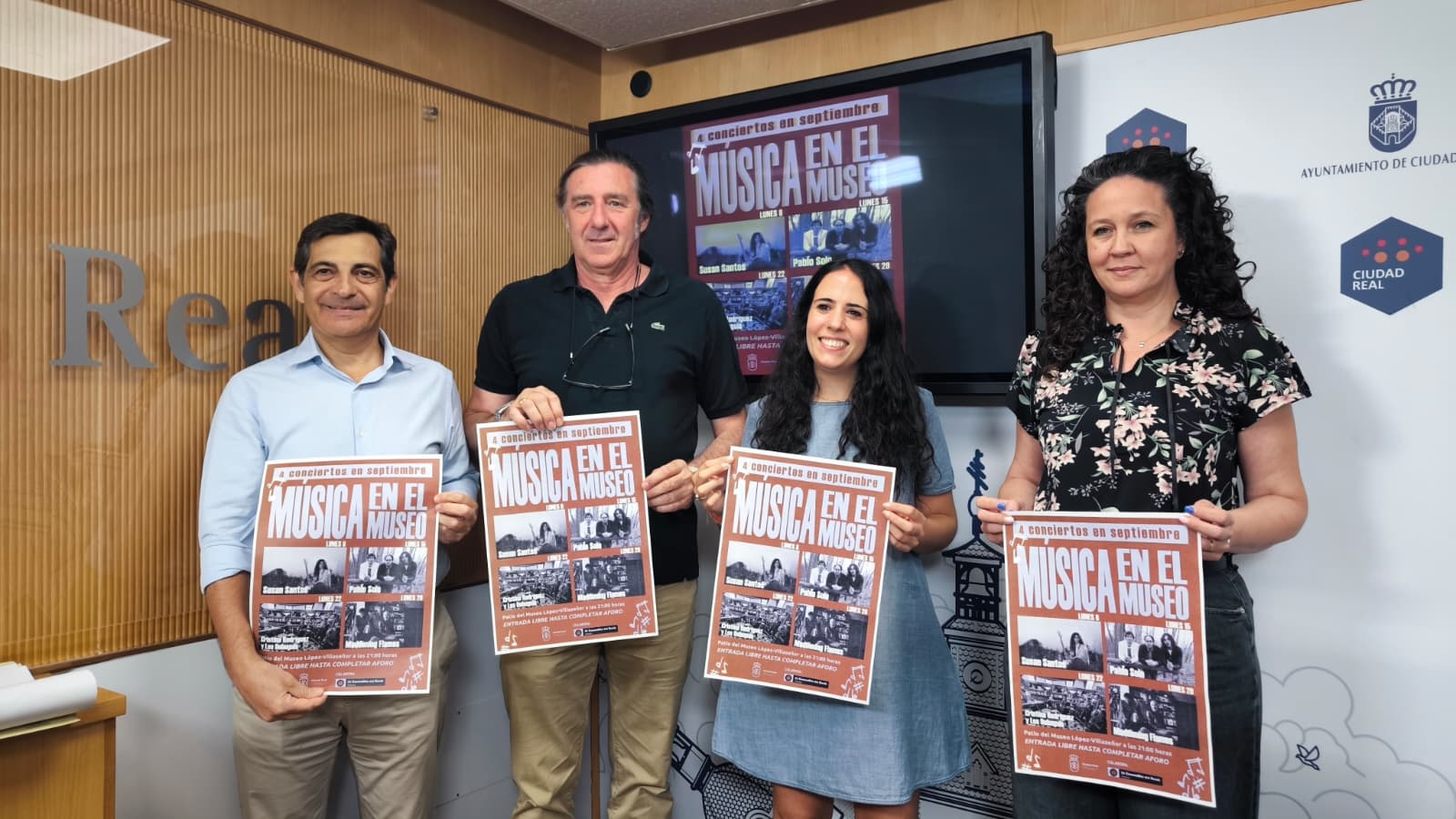 Comienza el curso cultural en Ciudad Real y lo hace de forma muy potente, así lo ha considerado el concejal responsable del área, Pedro Lozano, durante la presentación del ciclo “Música en el Museo”, organizado por el Ayuntamiento con la colaboración del podcast “El escondite del rock”. Durante los próximos cuatro lunes, desde las 21 horas y con entrada gratuita, el patio del museo López Villaseñor acogerá las actuaciones –en este orden– de Susan Santos, Pablo Solo, Cristina Rodríguez y los Debuguis y Maddening Flames, que presentarán sonidos que pasan por el rock, el blues, el soul o el country.