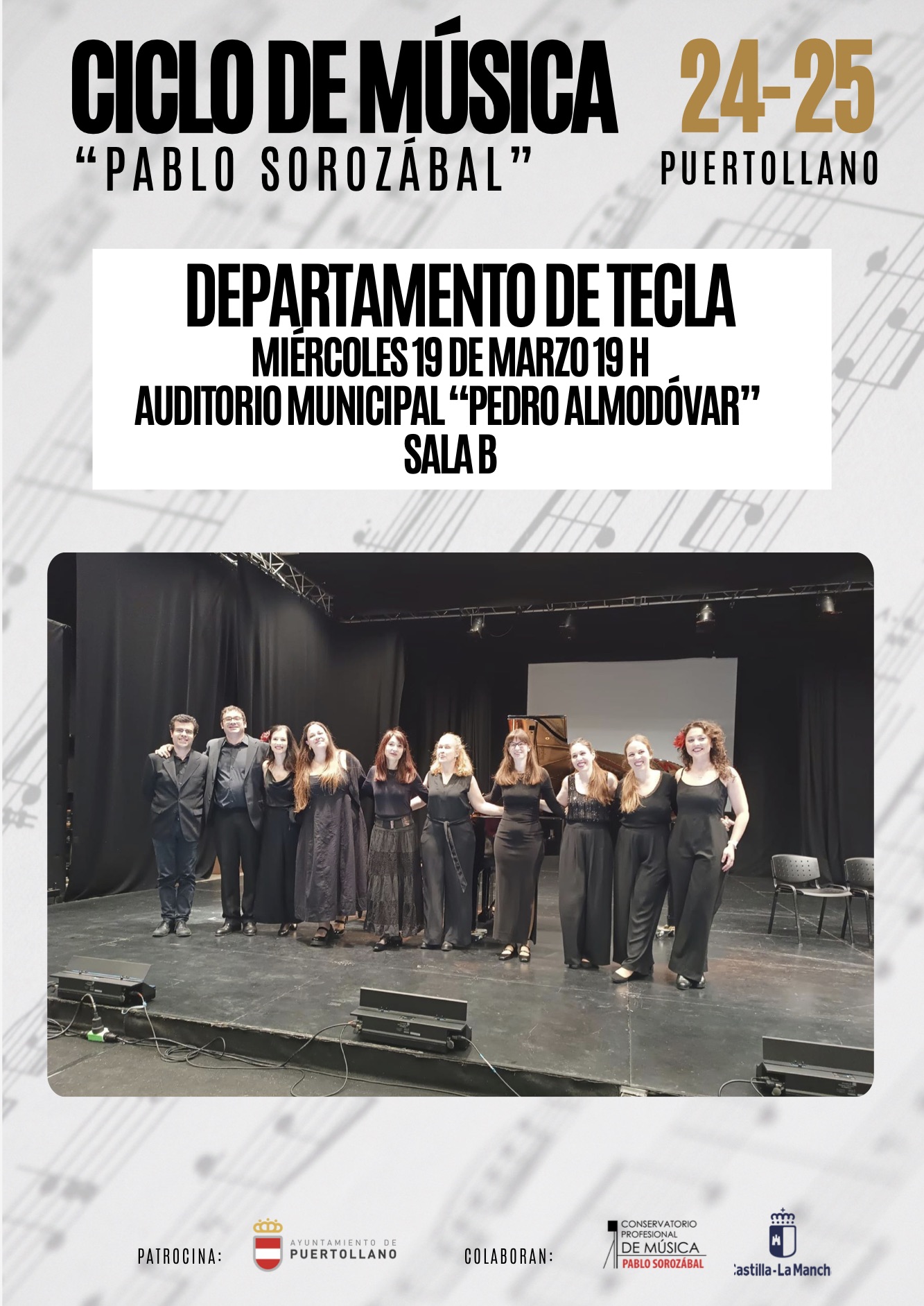 El próximo miércoles 19 de marzo, a las 19:00 horas, el Departamento de Piano del Conservatorio de Música de Puertollano ofrecerá un concierto en la Sala B del Auditorio Municipal de Música “Pedro Almodóvar”. Este concierto se enmarca dentro del Ciclo de Música “Pablo Sorozábal 2024-25” que está teniendo lugar durante el presente curso y en el que el profesorado de los diferentes Departamentos Didácticos del Conservatorio participan.