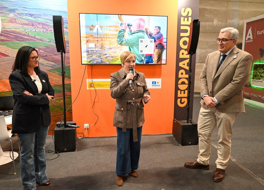 Esta presentación marca la evolución del Geoparque, simbolizando la transición definitiva desde el concepto inicial de proyecto hacia la consolidación de un modelo territorial reconocible. Durante su intervención, Sonia González ha subrayado la importancia de la nueva imagen del Geoparque Volcanes de Calatrava–Ciudad Real en FITUR dentro del estand de la Red Española de Geoparques de la UNESCO, integrada actualmente por 18 geoparques. “Hoy es un día importante porque volvemos a FITUR para dar a conocer una nueva identidad corporativa que, estoy convencida, va a impulsar aún más nuestro Geoparque. No se trata solo de un cambio de logotipo o de imagen, sino de toda una estrategia de comunicación en la que estamos trabajando y que empieza a materializarse aquí”, ha señalado González.