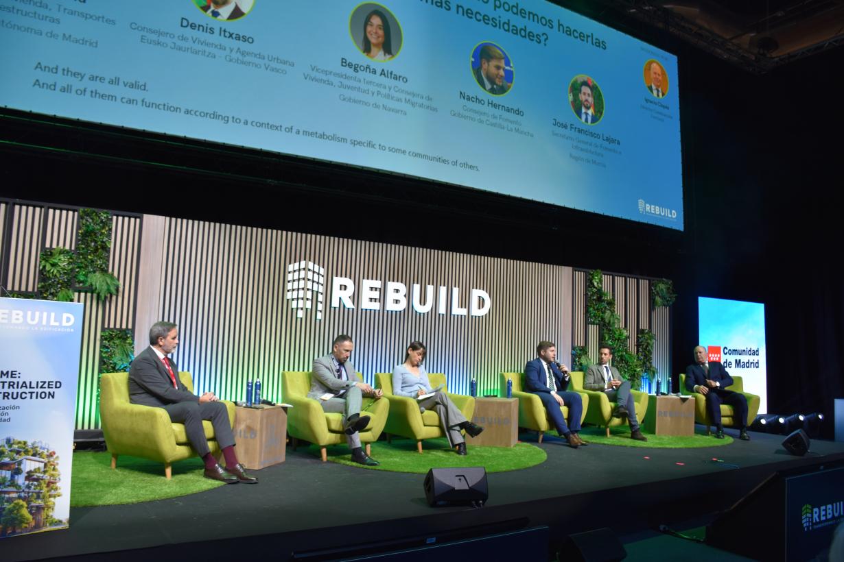 El consejero de Fomento, Nacho Hernando, ha participado en la Feria de construcción ‘Rebuild’ en un encuentro junto con los responsables de Vivienda de los gobiernos de la Comunidad de Madrid, Murcia, País Vasco y Navarra donde han expuesto las medias que cada una de las comunidades autónomas están implementando en torno a esta cuestión. Un encuentro al que también ha asistido la directora general de Vivienda, Salu García Alfaro.