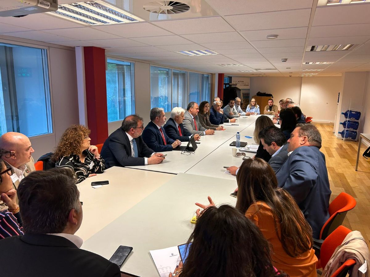 El consejero de Agricultura, Ganadería y Desarrollo Rural, Julián Martínez Lizán, acompañado por el director general de Desarrollo Rural, José Juan Fernández; la directora general de Asuntos Europeos, Nazareth Rodrigo el presidente de RECAMDER, Jesús Ortega, y representantes de los Grupos de Desarrollo Rural, mantuvo el pasado lunes una reunión con representantes de la Comisión Europea para trasladar las inquietudes y el posicionamiento del Gobierno de Castilla-La Mancha sobre la planificación de la Política Agraria Común (PAC) para el periodo 2028-2034.