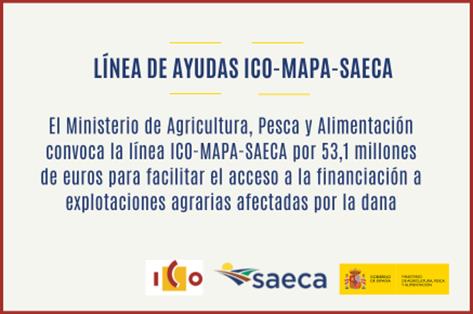 El préstamo subvencionado deberá estar avalado por SAECA. En este sentido el día 31 de diciembre se publicó en el BOE la convocatoria de subvención de avales de SAECA por 11.900.0000 euros, que será ampliada en otros 5,35 millones de euros en 2025. Esta ayuda se destina íntegramente a subvencionar el coste de los avales de los créditos subvencionados en la línea ICO-MAPA-SAECA para los damnificados por la dana.