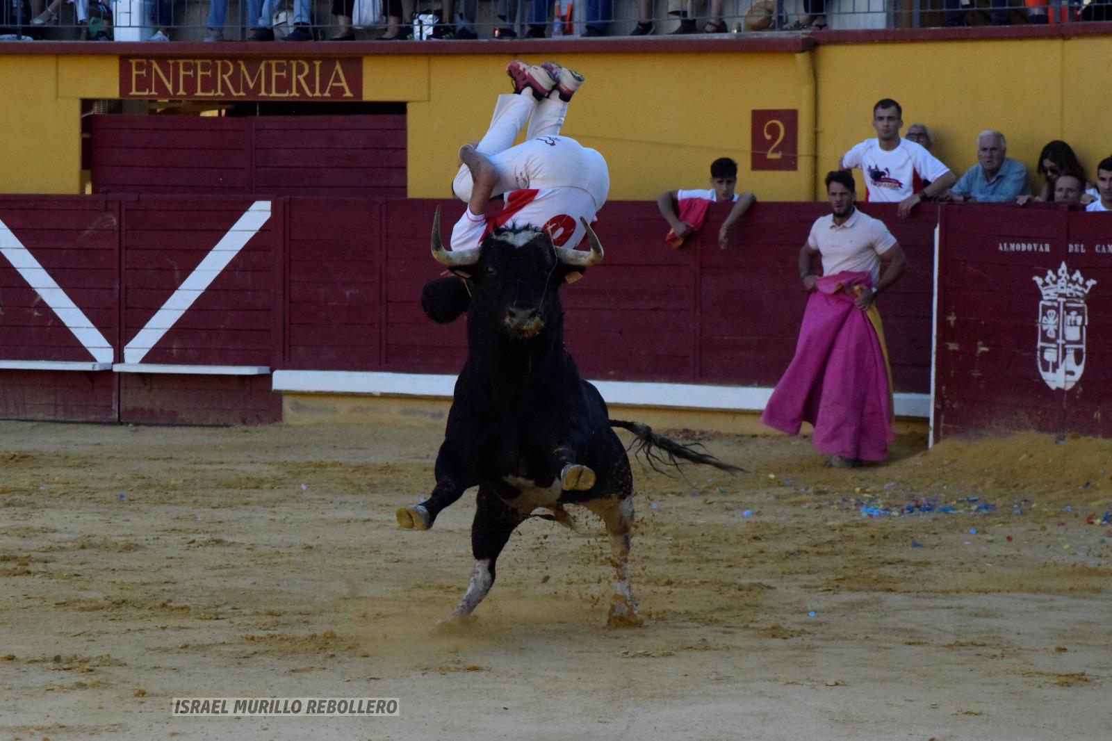 El recortador Jamal Che ha resultado herido este domingo en el transcurso del concurso de recortadores celebrado en la palza de toros de Almodóvar del Campo tras recibir una fuerte cogida en su primera suerte de la final. Cuando intentaba realizar su salto hacia atrás, el toro de Galache echó la cara arriba, propinándole una cornada de unos 15 centímetros en la zona baja de la espalda. La rápida actuación del director de lidia y de sus compañeros evitaron que las consecuencias de la cogida fuera peores. Fue trasladado rápidamente a la enfermería y posteriormente al hospital de Puertollano, donde se recupera favorablemente.