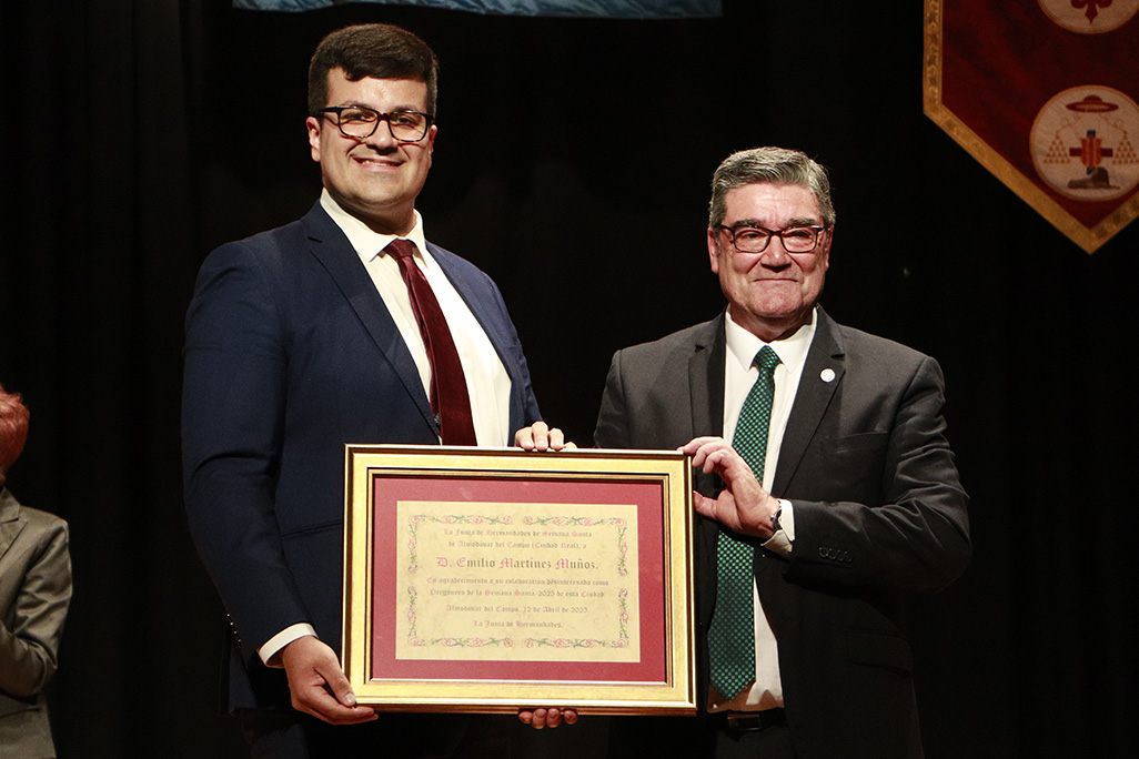 Tras esta sentida intervención, el pregonero, que previamente había recibido la carpetilla ornamental donde poder guardar las hojas de su pregón, recibió del presidente de la Junta de Hermandades de Semana Santa, la inscripción conmemorativa de su intervención, felicitándole Jaime Rosa por un pregón que “ha sido un reflejo de su fe profunda y su integridad espiritual”.