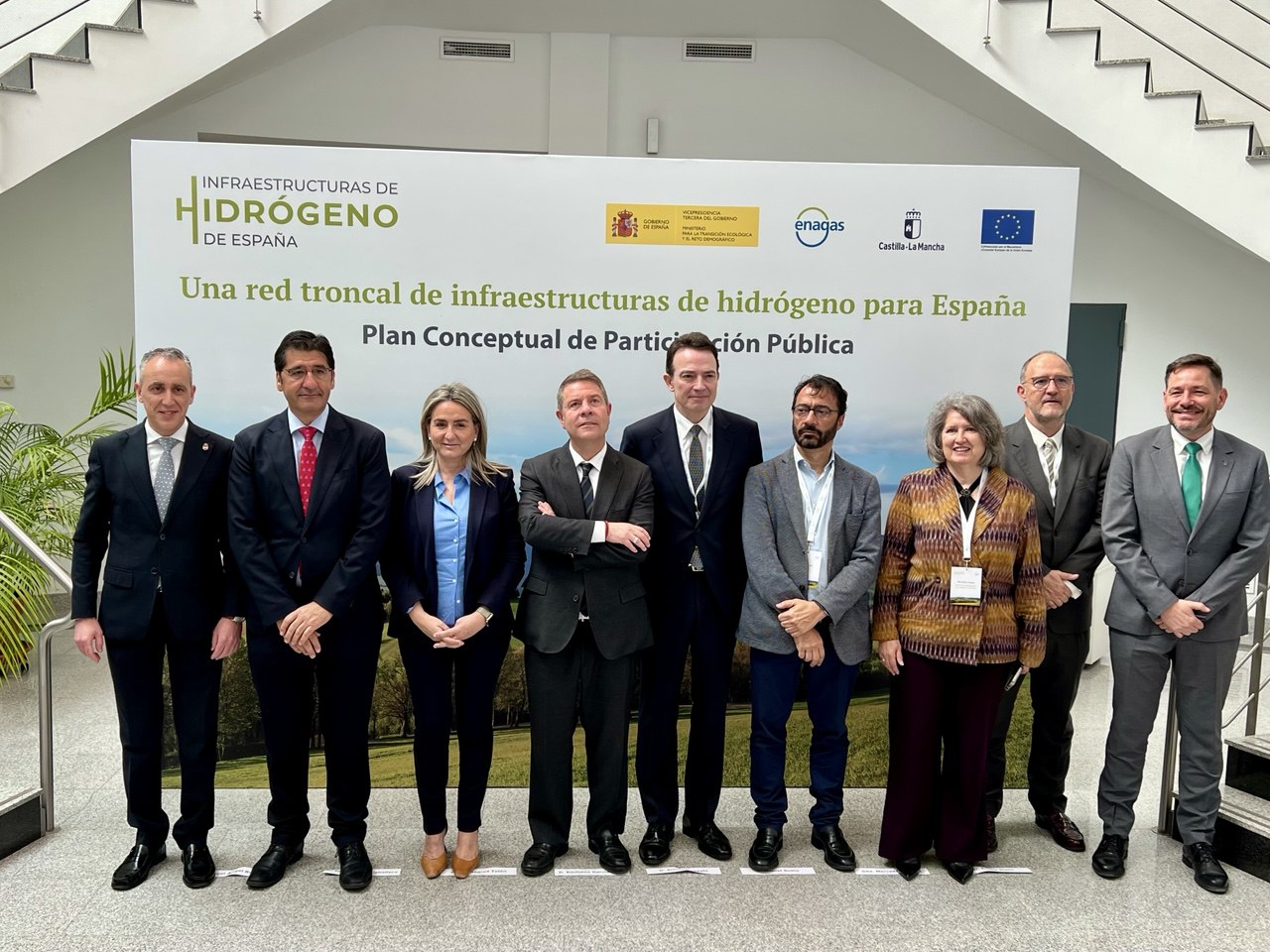 Enagás ha iniciado este viernes en Puertollano el Plan Conceptual de Participación pública de la Red Española del Hidrógeno, el mayor de estas características emprendido en España, una «iniciativa sin precedentes» que informará a 380 organismos políticos y asociaciones de todo el territorio nacional del desarrollo de 2.600 kilómetros de una red de hidroductos que atravesará 550 municipios y 13 comunidades autónomas. Al acto de presentación, celebrado en el Centro Nacional del Hidrógeno, han acudido importantes representantes de las administraciones y empresas, entre ellos el presidente de de Castilla-La Mancha, Emiliano García-Page; la delegada del Gobierno en Castilla-La Mancha, Milagros Tolón; la consejera de Desarrollo Sostenible, Mercedes Gómez, el subsecretario para la Transición Ecológica y el Reto Demográfico, Miguel González Suela; el alcalde de Puertollano, Miguel Ángel Ruiz, y el director del Centro Nacional del hidrógeno, Emilio Nieto.