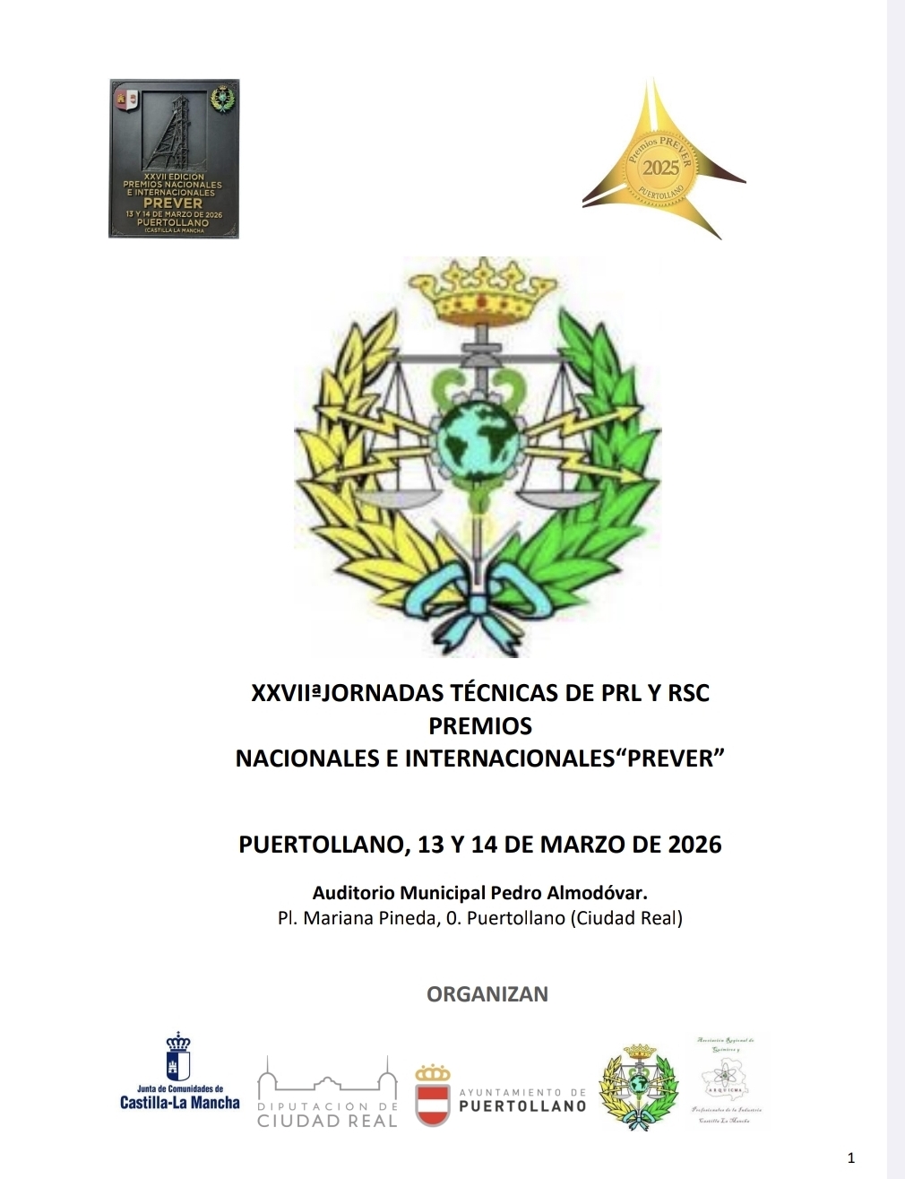 Los próximos 13 y 14 de Marzo en el auditorio Pedro Almodóvar de Puertollano se llevarán a cabo las XXVIIª Jornadas Técnicas del prevención de Riesgos Laborales y RSC, así como la entrega de los premios nacionales e internacionales «Prever».