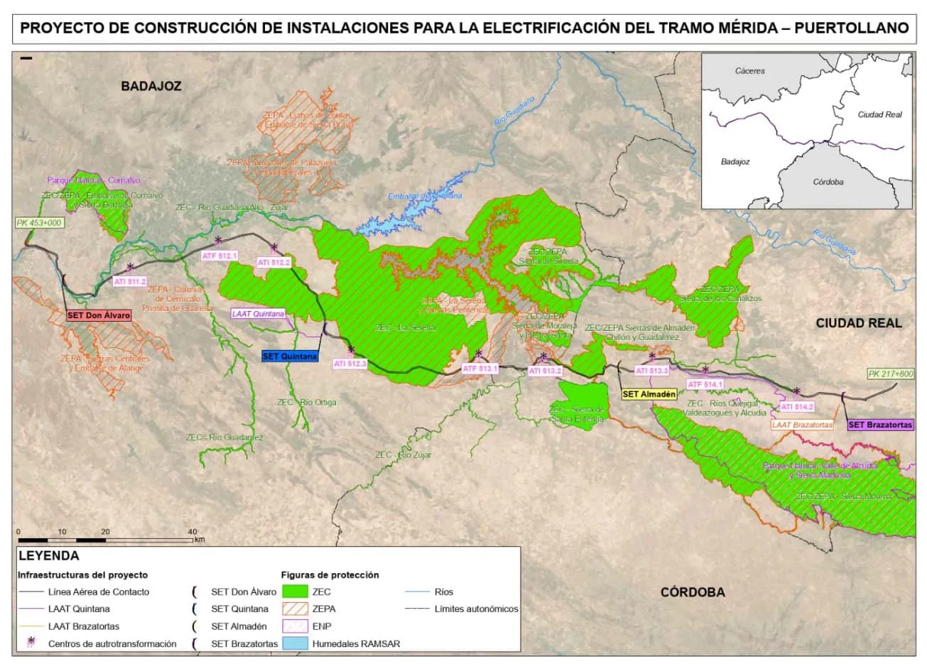 El Ministerio de Transportes y Movilidad Sostenible ha publicado este lunes en el Boletín Oficial del Estado el anuncio del Administrador de Infraestructuras Ferroviarias por el que se somete a información pública, a efectos de declaración de la necesidad de ocupación, el proyecto básico de las subestaciones de tracción, centros de autotransformación asociados y líneas de alta tensión del tramo de ferrocarril Puertollano–Mérida de la línea Ciudad Real–Badajoz.