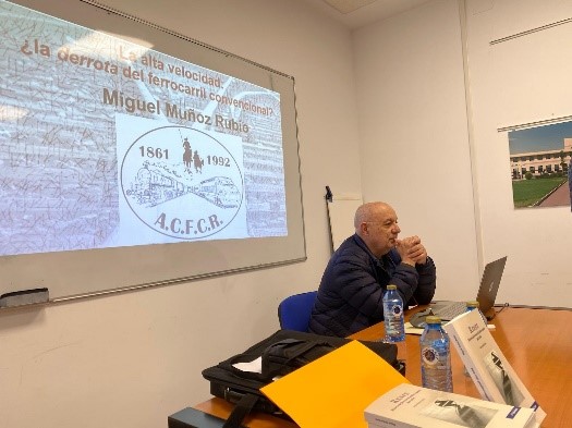 La conferencia se ha centrado fundamentalmente en el libro reciente editado (segunda edición) por el conferenciante “Renfe. Historia del ferrocarril público español 1941-2004.