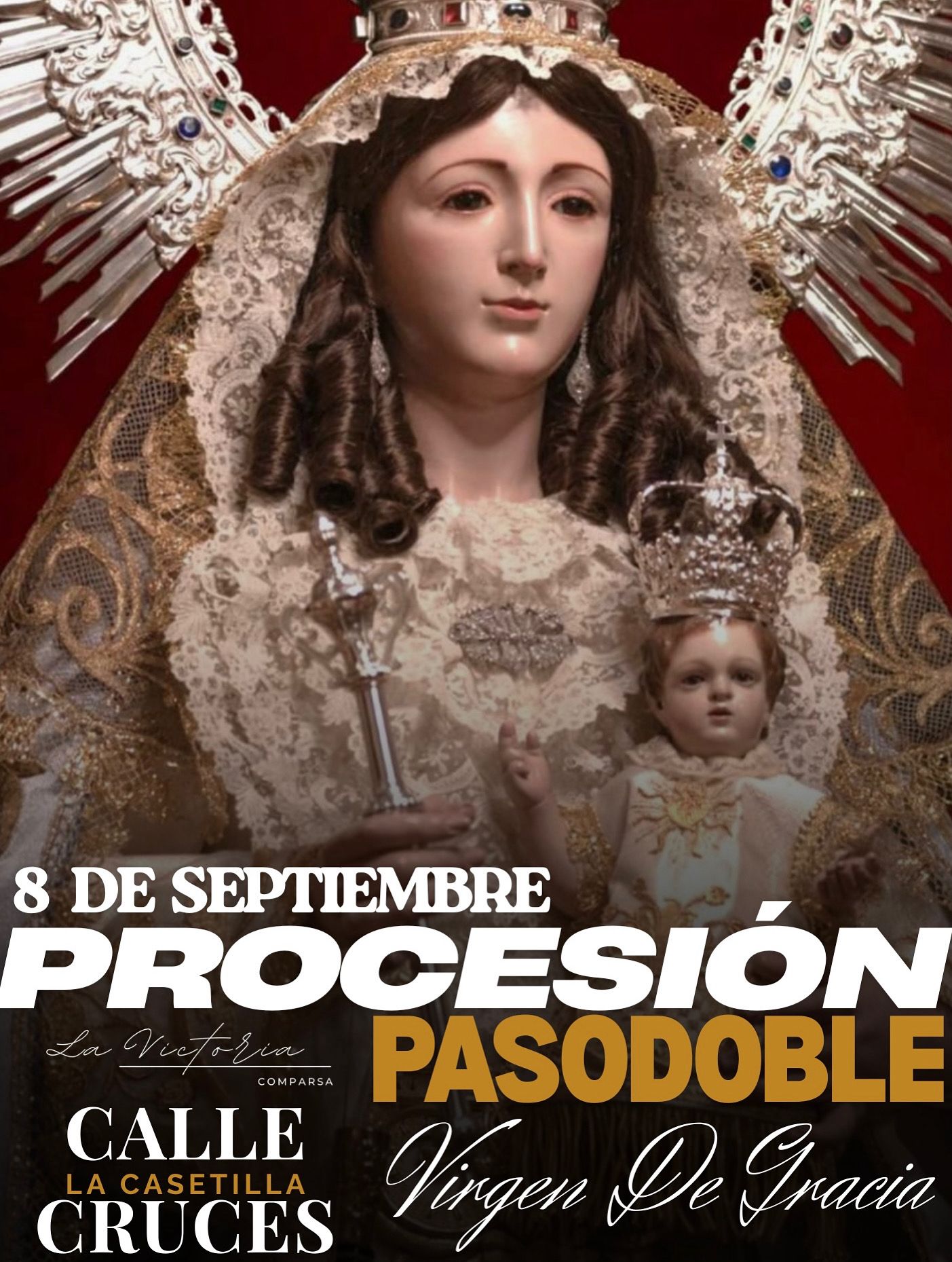 La comparsa «La Victoria» de Puertollano vivirá uno de los momentos más esperados del año: la procesión de la Virgen de Gracia, patrona de la localidad. Como broche de oro, la comparsa La Victoria interpretará en directo, en la calle Cruces, el pasodoble dedicado a la Virgen de Gracia, la misma pieza que estremeció los corazones en el pasado Carnaval y que ahora volverá a sonar para honrar a la patrona en su día grande.