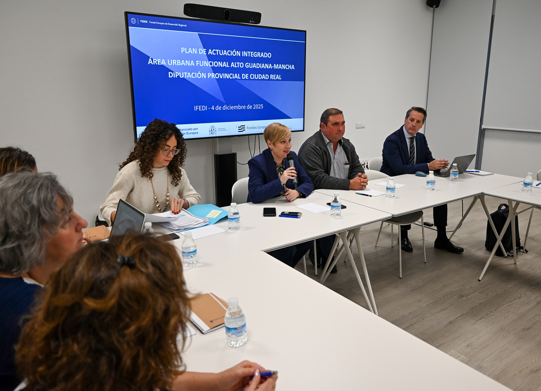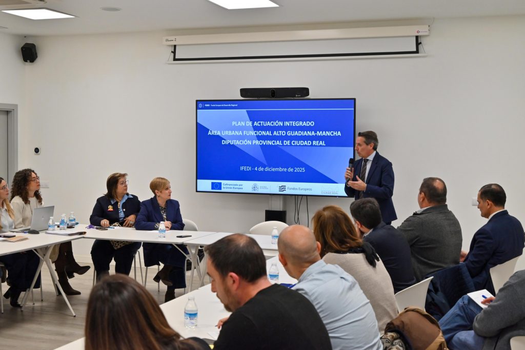 La Diputación Provincial de Ciudad Real ha celebrado en el complejo ferial IFEDI una primera reunión de trabajo con representantes municipales y responsables técnicos de los quince municipios que integran el Área Urbana Funcional Alto Guadiana-Mancha: Alhambra, Arenas de San Juan, Argamasilla de Alba, Carrizosa, Daimiel, La Solana, Las Labores, Llanos del Caudillo, Manzanares, Membrilla, Puerto Lápice, Ruidera, San Carlos del Valle, Villarrubia de los Ojos y Villarta de San Juan.