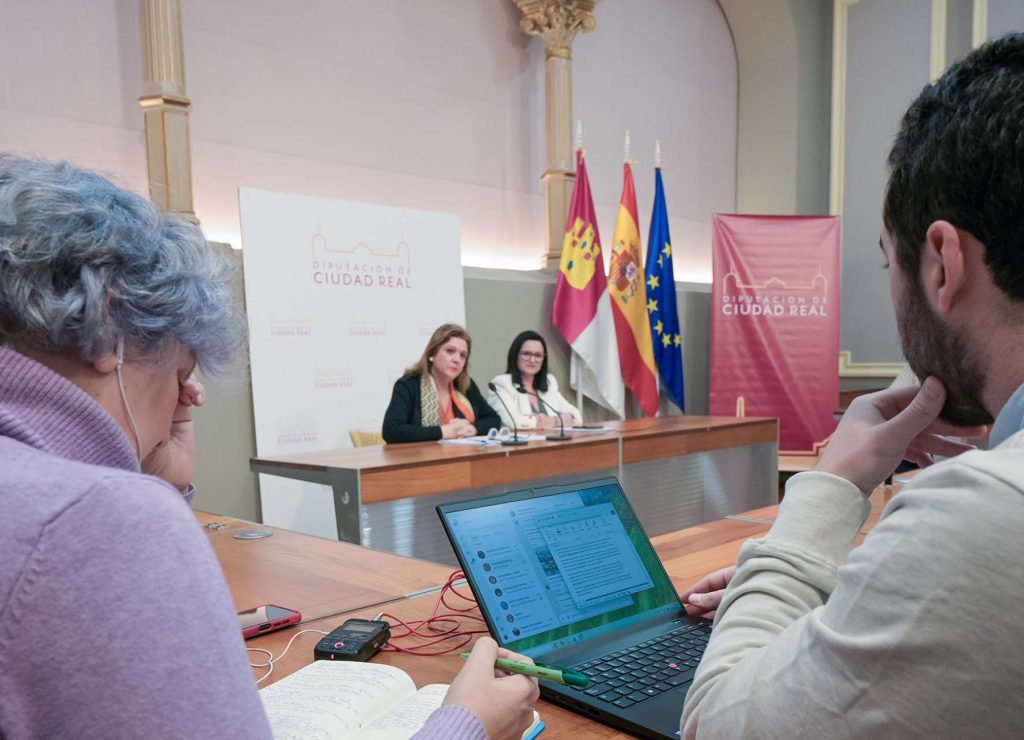 La diputada provincial y delegada de la gestión del Área de Apoyo a los Municipios de la Diputación de Ciudad Real, Maribel Mansilla, junto a la portavoz del Equipo de Gobierno, Rocío Zarco, han comparecido esta mañana en rueda de prensa para informar sobre el trabajo desarrollado por el área con el principal objetivo de favorecer el funcionamiento de los ayuntamientos de la provincia.