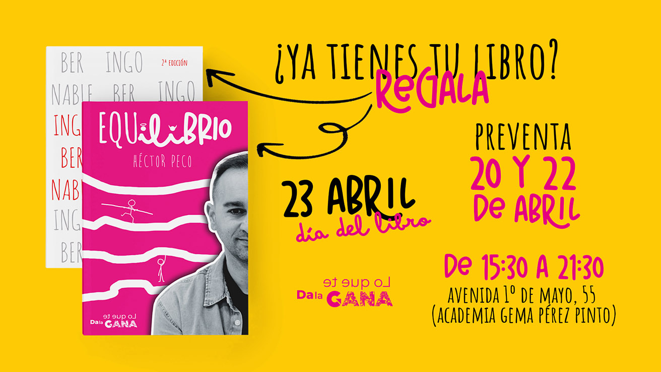 Los días 20 y 22 de abril, de 15:30 a 21:30, la Academia Gema Pérez Pinto (Avenida Primero de Mayo, 55) acogerá la preventa exclusiva de “Equilibrio”, la nueva obra de Héctor Peco. Es la oportunidad perfecta para asegurar tu ejemplar antes de su presentación oficial, que tendrá lugar el 24 de abril a las 19:00 horas en el Museo Cristina García Rodero de Puertollano. Además, si aún no lo tienes, podrás hacerte con un ejemplar de la segunda edición mejorada de su gran éxito: “Ingobernable (pero no contigo)”. ¡No dejes pasar esta oportunidad!