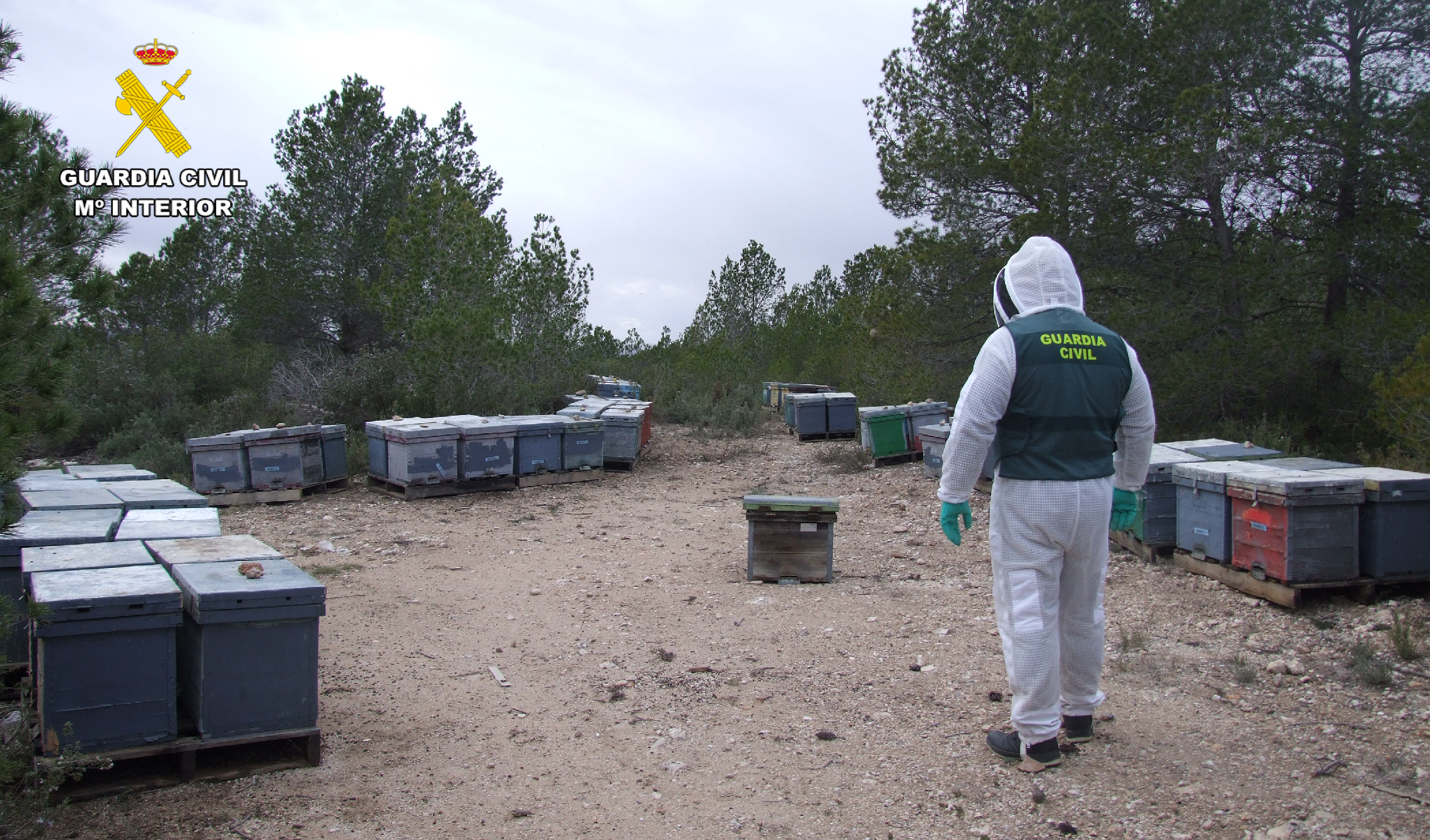 Efectivos de la Guardia Civil de Aýna, dentro de su compromiso para la protección del medio ambiente y la apicultura, han detenido aun vecino de la localidad albacetense de Paterna del Madera, de 56 años de edad, como presunto autor del hurto de quince colmenas apícolas, sitas en un paraje del término municipal ayniego.