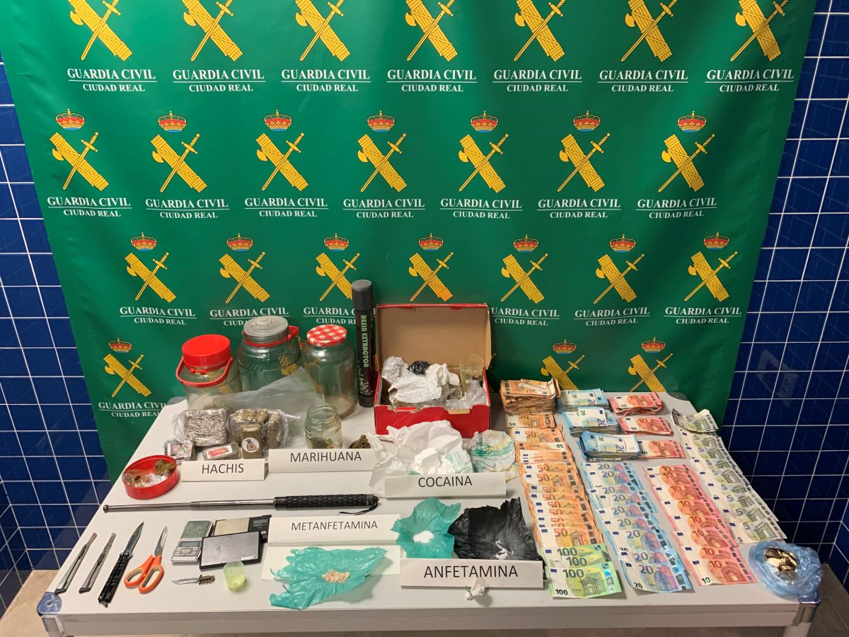 La Guardia Civil ha detenido a una persona como presunta autora de un delito contra la salud pública por tráfico de drogas en la localidad de Tomelloso (Ciudad Real), incautando diversos tipos de drogas, así como efectos relacionados con la preparación, dosificación y venta de estas sustancias. También se han aprehendido más de 25.000 euros en efectivo.