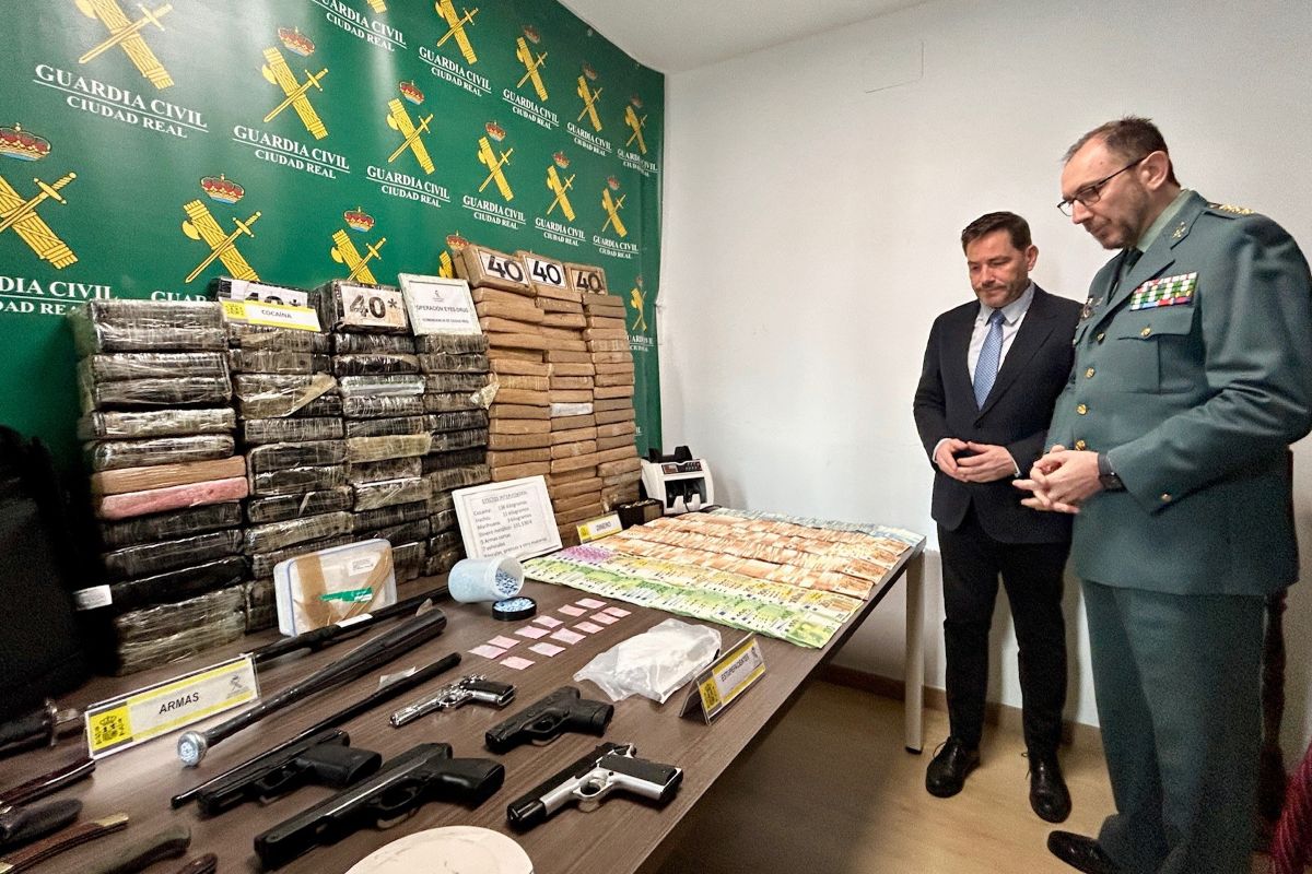El subdelegado del Gobierno en Ciudad Real, David Broceño, y el jefe de la Comandancia de la Guardia Civil en la provincia, Juan Antonio Valle, han sido los encargados de ofrecer los detalles de la ‘Operación Aisdra’, que ha supuesto un duro golpe al tráfico de drogas a gran escala y a una de las redes criminales más activas en el centro peninsular.