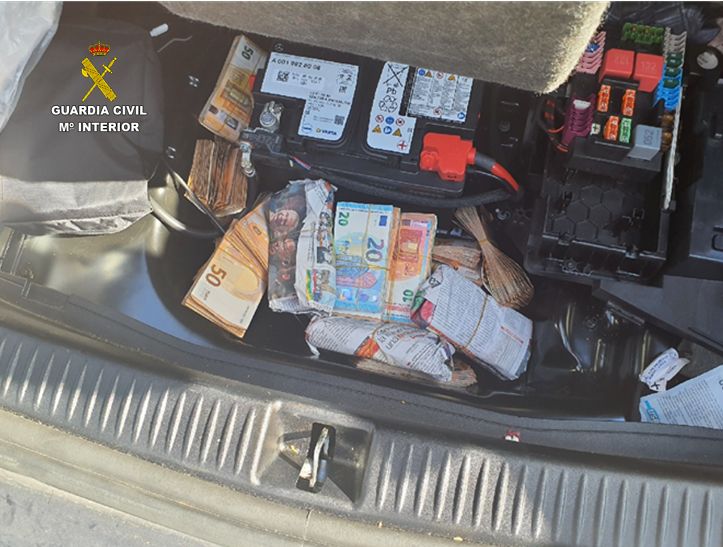 En el transcurso del mismo se procedió a la identificación de un vehículo con un solo ocupante el cual, tras el registro de los agentes, se encontró que transportaba la cantidad de 133.900 euros en metálico escondidos en un compartimento junto a la batería en el maletero, sin poder justificar de ninguna manera ni aportar ningún tipo de acreditación o certificado que muestre la legalidad de su procedencia, así como de la autorización para su transporte, al exceder el límite legal permitido sin autorización.