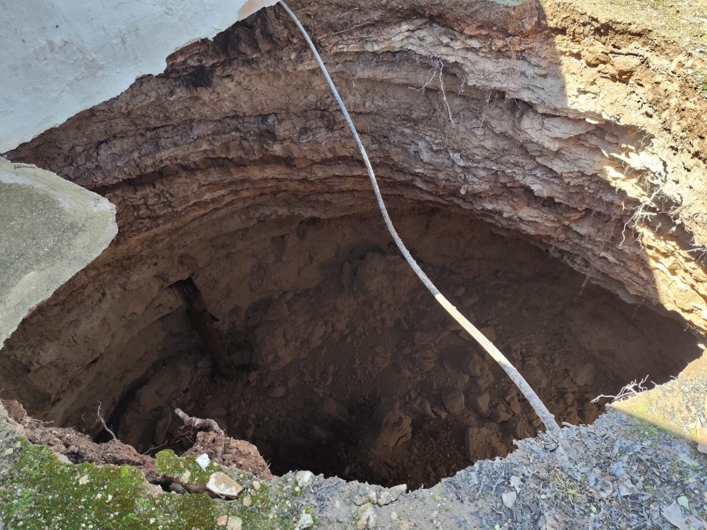 Ha ocurrido en la casa de campo de Ramón Díaz de Mera, un jubilado daimieleño que el pasado jueves, al acudir a su propiedad, se encontró con un enorme agujero de 10 metros de profundidad.