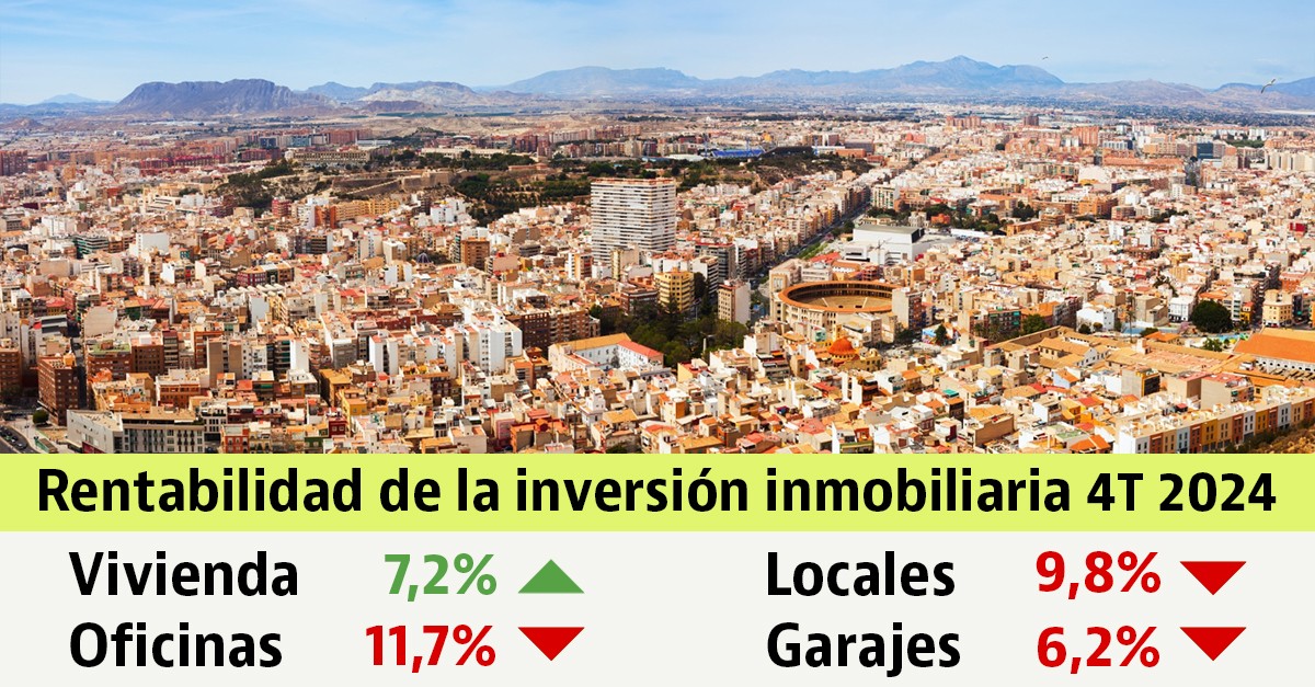 La rentabilidad bruta de la compra de una vivienda para ponerla en el mercado del alquiler ha crecido durante el cuarto trimestre hasta el 7,2%, ya que al finalizar 2023 el retorno que ofrecía se situaba en el 7,1%. Según el estudio realizado por idealista, la rentabilidad obtenida duplica, en el peor de los productos inmobiliarios analizados, las tasas que ofrecen los Bonos del Estado a 10 años (3,1%).