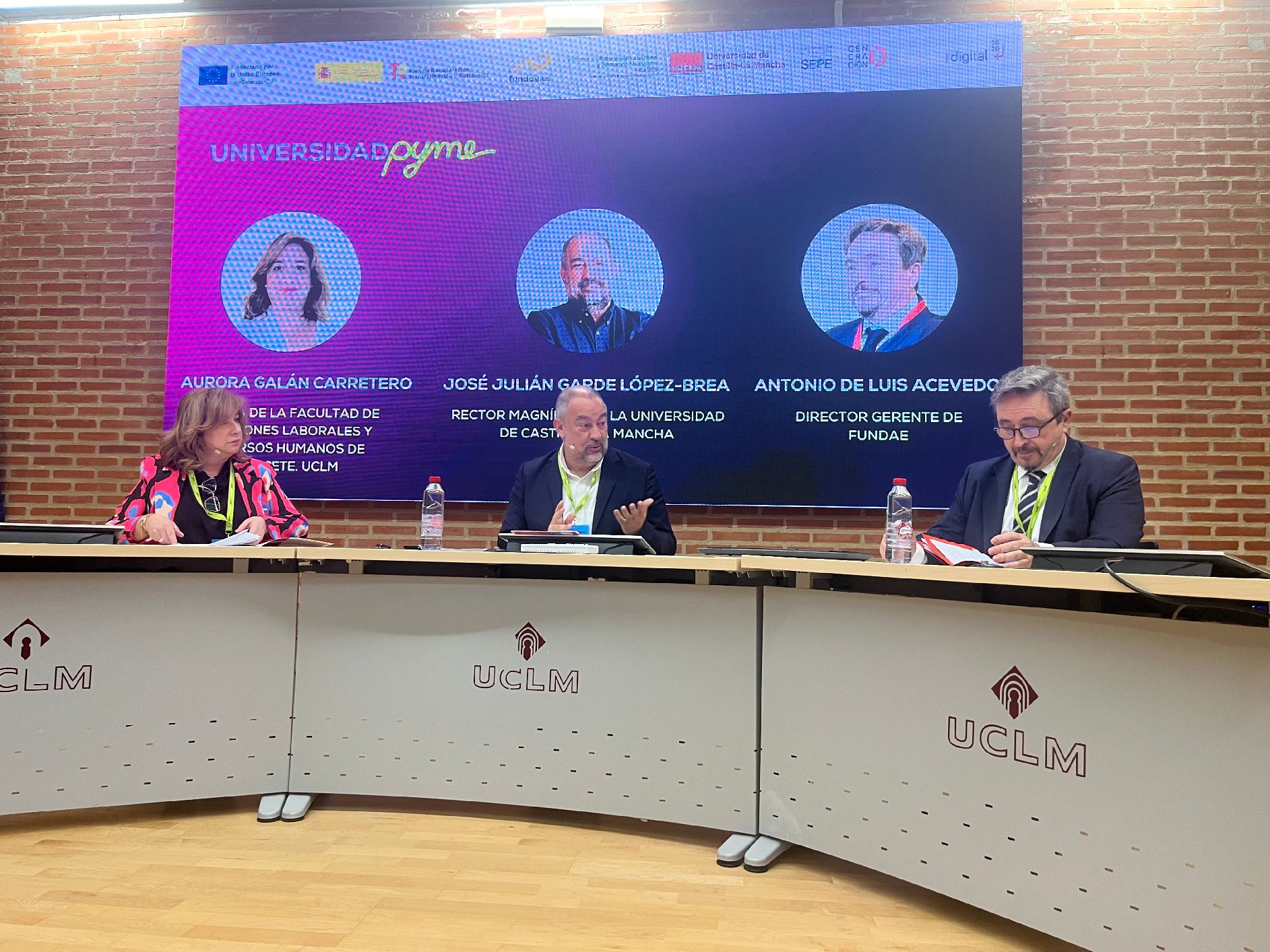 Durante el acto de bienvenida ha intervenido el rector de la UCLM, Julián Garde; el director gerente de Fundae, Antonio de Luis Acevedo; y la decana de la Facultad, Aurora Galán.
