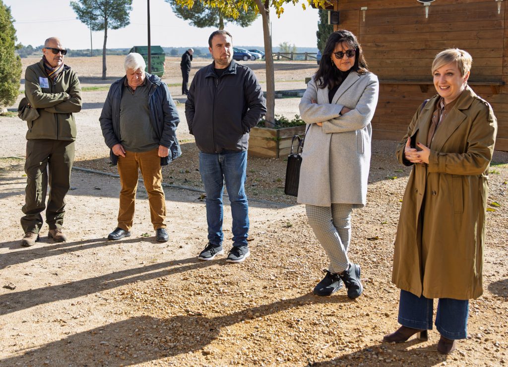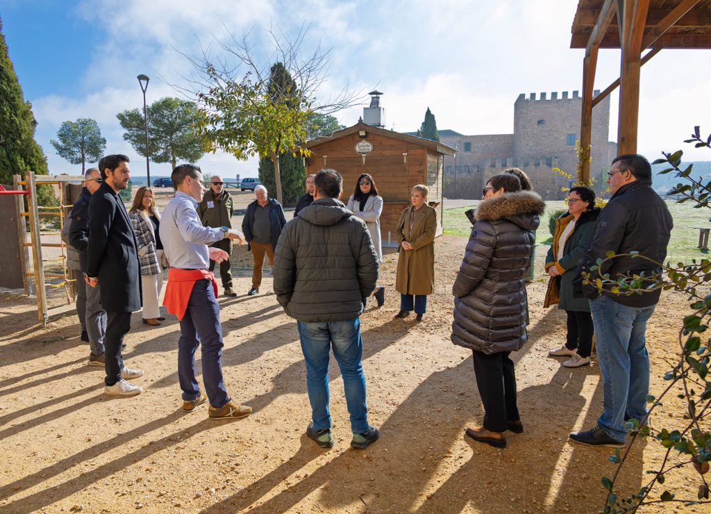 Tras la recepción, los auditores realizaron un recorrido por diversos enclaves estratégicos para conocer de primera mano la riqueza natural y cultural del Campo de Montiel. La jornada comenzó con una visita guiada al Castillo de Peñarroya, donde pudieron conocer tanto la fortaleza como el paisaje que la rodea. Este entorno, situado en uno de los accesos al Parque Natural, constituye un punto emblemático para la observación del firmamento. Posteriormente la comitiva se desplazó hasta la finca Pago Montalvo Wilmot.
