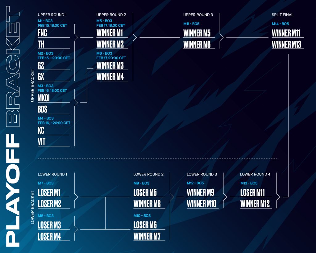 La primera ronda de playoffs se juega los días 15 y 16 de febrero y la segunda ronda el 17 de febrero (winners) y 23 de febrero (losers), aunque iremos informando de todo el calendario en este artículo de aquí.