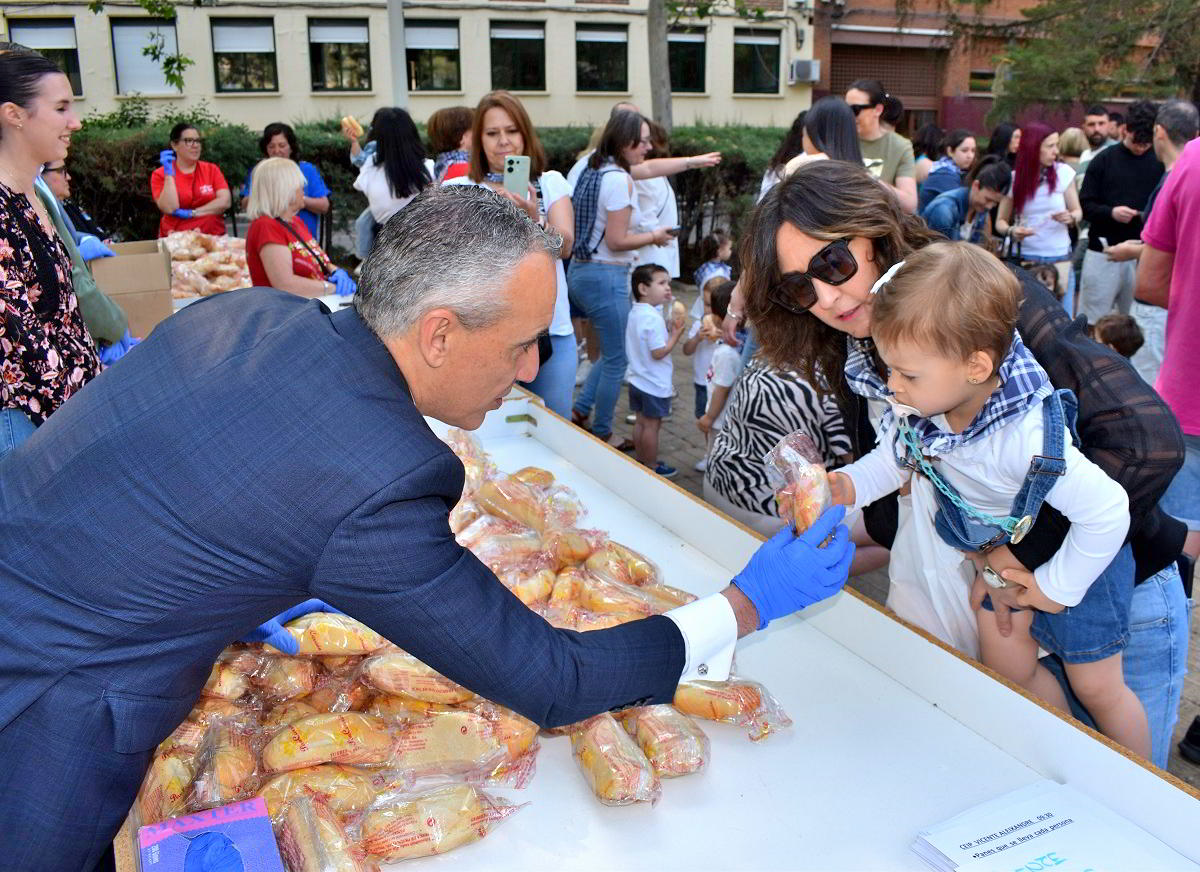 El alcalde, Miguel Ángel Ruiz, junto a diversos concejales del equipo de gobierno e integrantes de la asociación folklórica Fuente Agria han sido los encargados de entregar uno a uno los sagrados panecillos de pan.