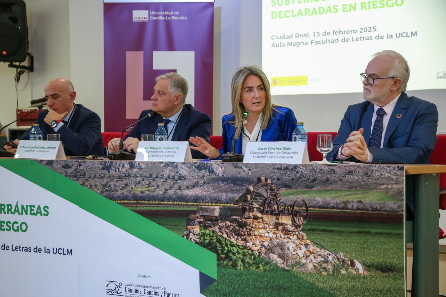 La delegada del Gobierno de España en Castilla-La Mancha, Milagros Tolón, ha inaugurado esta mañana la Primera Jornada Técnico Jurídica organizada por la Confederación Hidrográfica del Guadiana (CHG) y que lleva por nombre “La gestión de las aguas subterráneas en las masas declaradas en riesgo”, celebrada en la Facultad de Letras de la Universidad de Castilla-La Mancha, en Ciudad Real.
