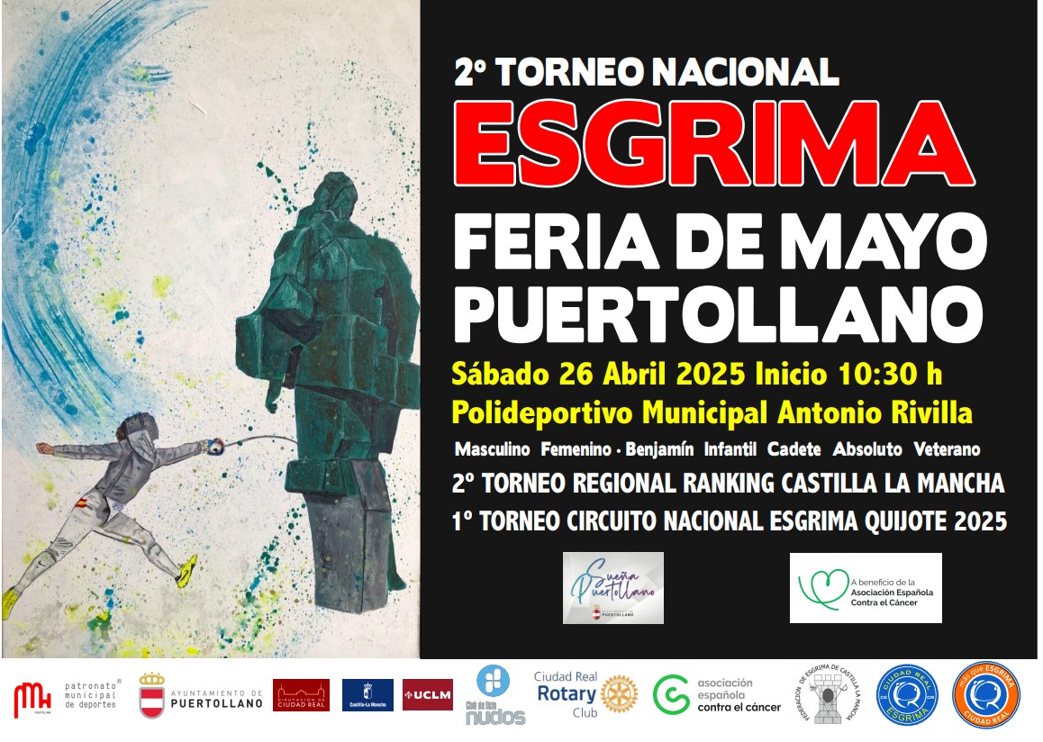 El próximo sábado 26 de abril de 2025, el Polideportivo Antonio Rivilla de Puertollano será el escenario del 2º Torneo Nacional de Esgrima “Circuito Quijote Puertollano” y el 2º Torneo Regional Ranking de la temporada 2024/2025, una cita deportiva de relevancia nacional y regional organizada por el Club Esgrima Ciudad Real, en colaboración con la Concejalía de Deportes del Excmo. Ayuntamiento de Puertollano, que en esta edición tendrá un carácter benéfico a favor de la Asociación Española de Lucha contra el cáncer.