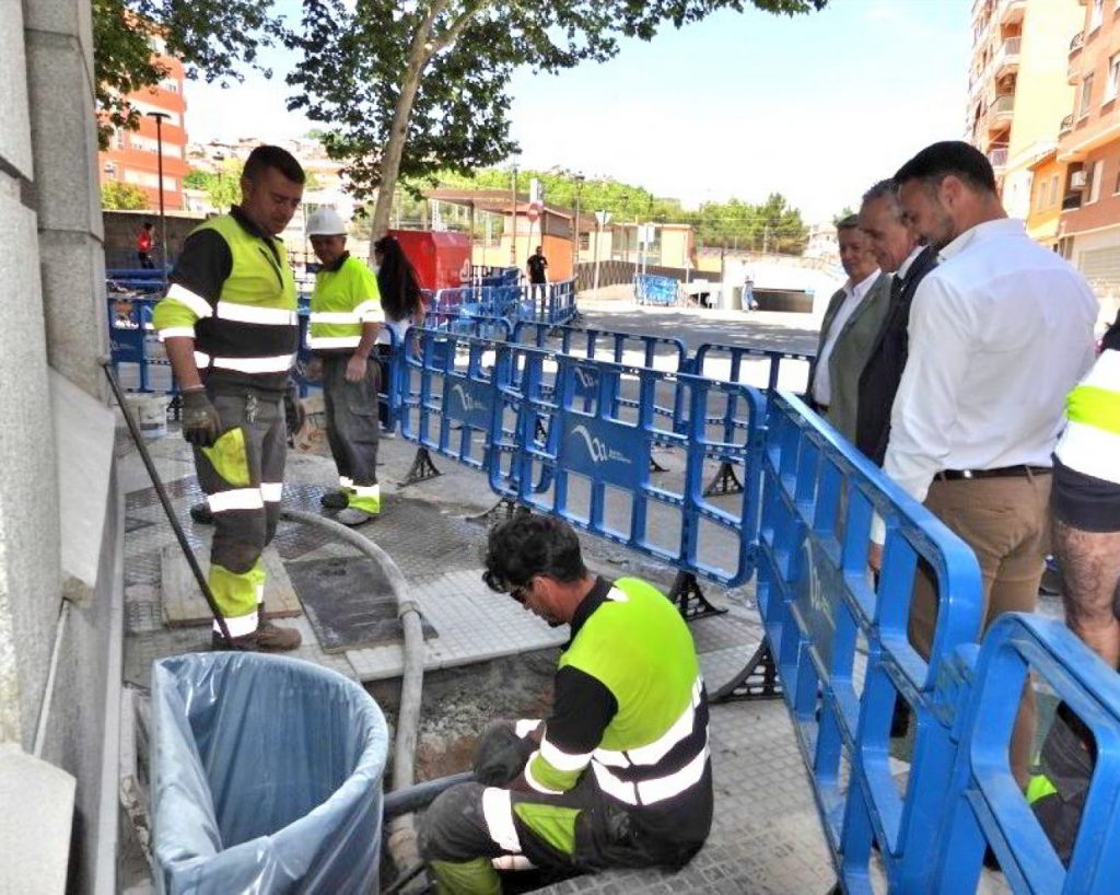 A lo largo de este viernes la calle Cruces se reabrirá al tráfico, una que vez acaben los trabajos de instalación del anillo de conexión con toda la red de agua que entronca con la calle Ancha, que se desarrollan en este punto durante esta semana y que han sido visitados por el alcalde, Miguel Ángel Ruiz, y el concejal de urbanismo, Javier Trujillo.