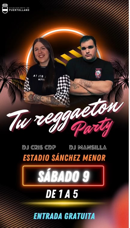 La Concejalía de Festejos del Ayuntamiento de Puertollano ha programado para este fin de semana una cita musical pensada especialmente para los jóvenes amantes de la música urbana y del regaetón . “Tu Reggaetón Party” es la denominación del evento gratuito que tendrá lugar en la portada del Recinto Ferial «José Mota» durante la madrugada del sábado 9 al domingo 10 de agosto, entre la una y las cinco
