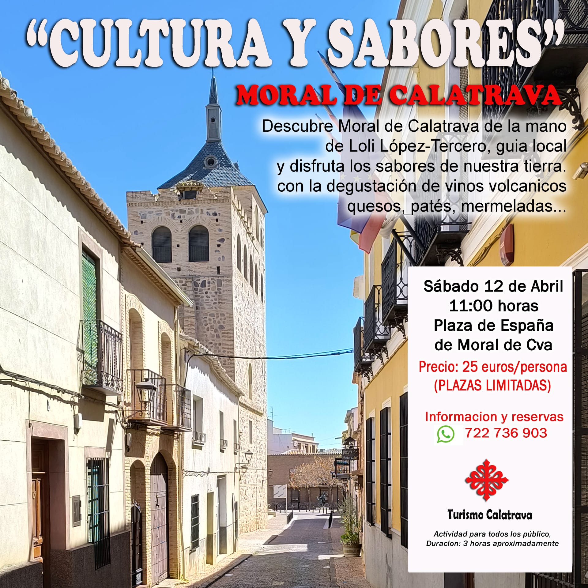 Turismo Calatrava organizará el sábado, 12 de abril, una nueva ruta cultural por el bello municipio de Moral de Calatrava. Según informan los promotores, la ruta permitirá descubrir Moral de Calatrava de la mano de Loli López-Tercero, guía local, y disfrutar de los sabores de esta zona, con la degustación de vinos volcánicos, quesos, patés, o mermelada. La cita será el sábado, 12 de abril, a las 11.00 horas, en la Plaza de España. Las plazas son limitadas y el precio es de 25 euros por persona. Para información y reservas: WhatsApp 722 736 903