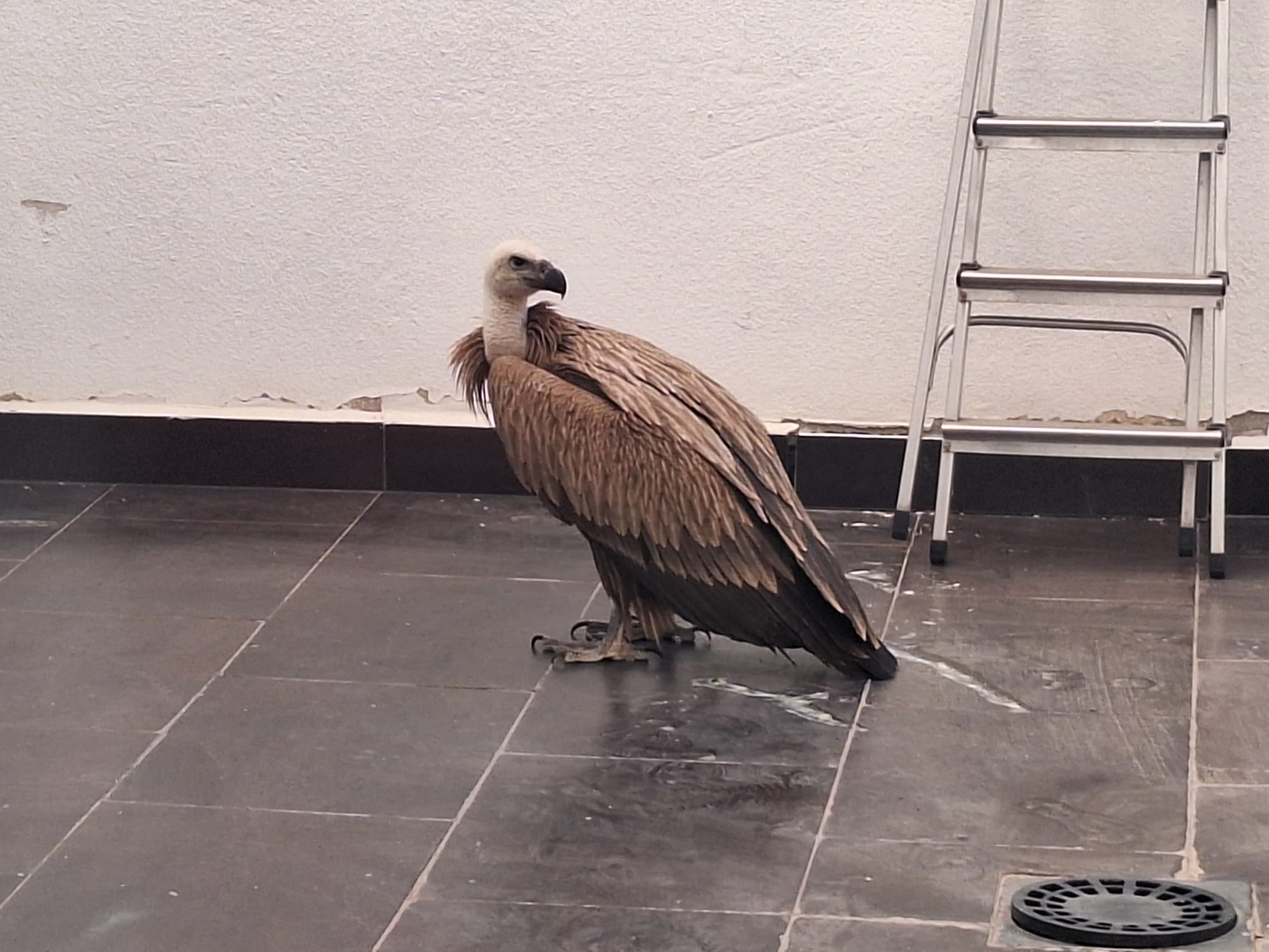 Un buitre leonado apareció esta mañana en el patio de luces de un bloque de la calle Gran Capitán. El dueño del piso que da acceso al patio llamó a la policía local que se personó casi de inmediato e hicieron las gestiones para que un agente medioambiental acudiera al inmueble y rescatara al animal. El ejemplar de buitre leonado es un pollo que ya había alcanzado el tamaño de un adulto, procedente del Valle de Alcudia o de la Sierra de Almodóvar. El animal no mostraba herida alguna pero sí síntomas de deshidratación. El ejemplar será enviado al centro de recuperación El Chaparrillo de Ciudad Real para su revisión y puesta en libertad.