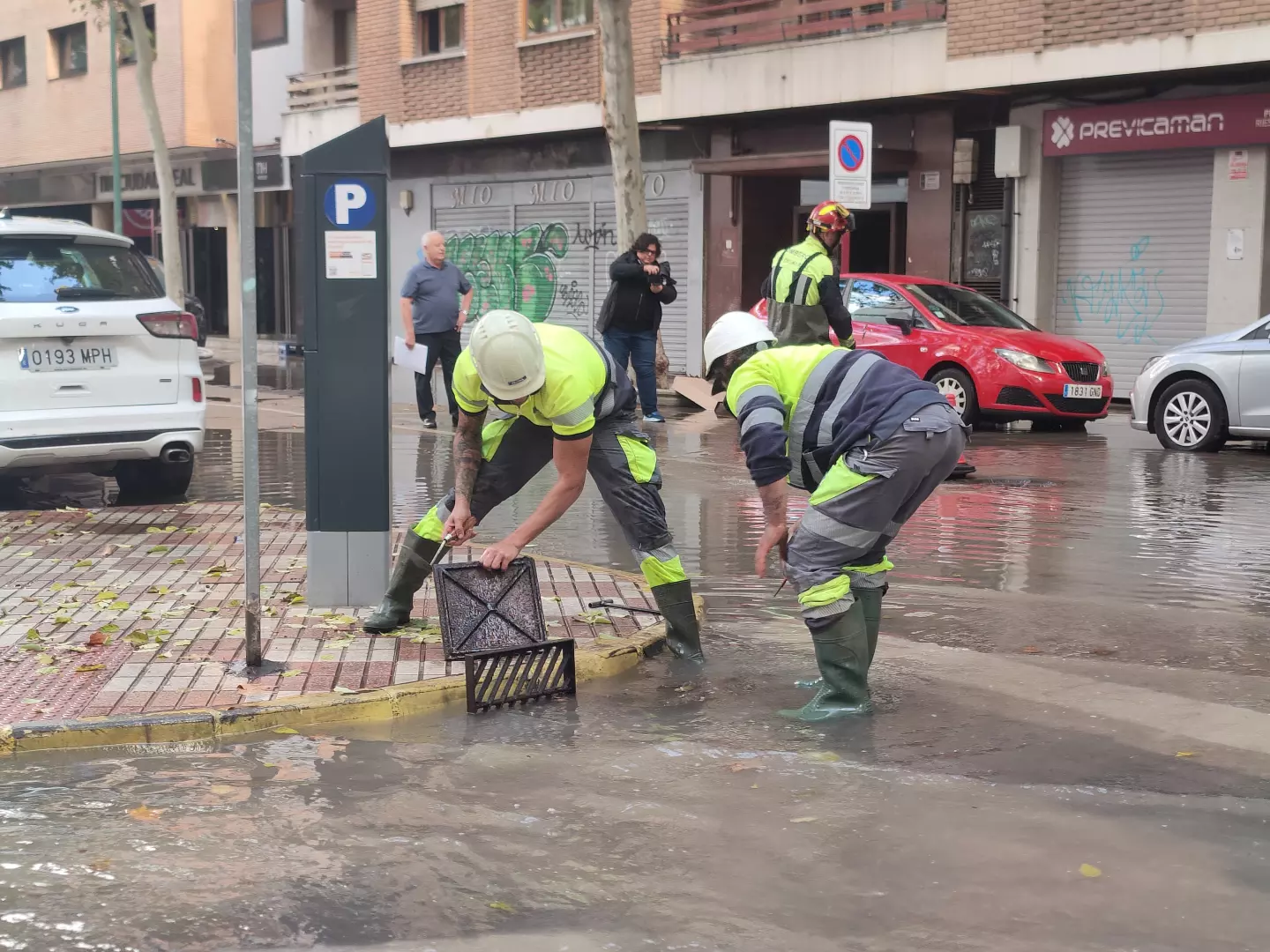 La Policía Local ha cortado uno de los carriles de la calle Alarcos. A la zona han acudido efectivos de Emergencia Ciudad Real, que han ayudado a evacuar el agua hacia la red de saneamiento, y de la empresa concesionara del Servicio de Aguas, Aquona.