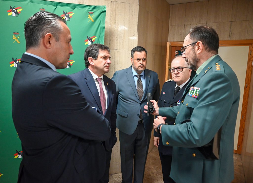 Valverde ha explicado que la Diputación también está adoptando medidas para mejorar la seguridad en el territorio provincial. Ha anunciado que este año se destinará casi un millón de euros a la implantación de cámaras de videovigilancia en núcleos rurales, forma prioritaria en los más pequeños, con el fin de que la Guardia Civil disponga de imágenes esenciales para esclarecer delitos. Además, ha detallado que la institución trabaja en la implantación de conectividad 5G en zonas rurales, lo que permitirá mejorar la seguridad tanto de los cuerpos policiales como el seguimiento de dispositivos de alejamiento y protección de víctimas de violencia de género.